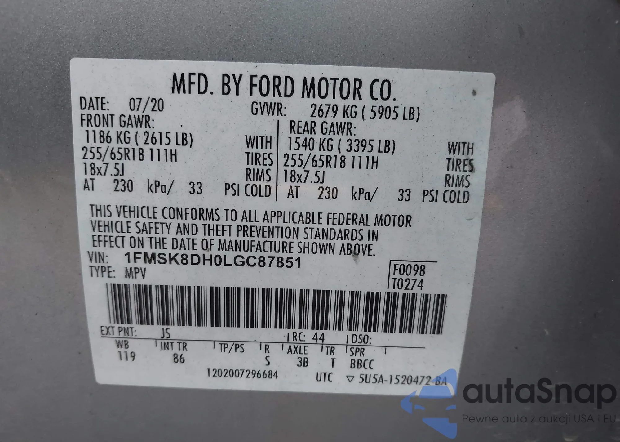 LOT: 43710717 VIN: 2FMDK3KC9BBA63440