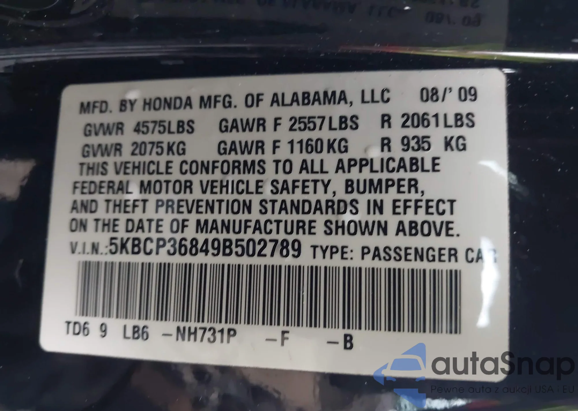 • VIN 5J6TF3H55CL004362