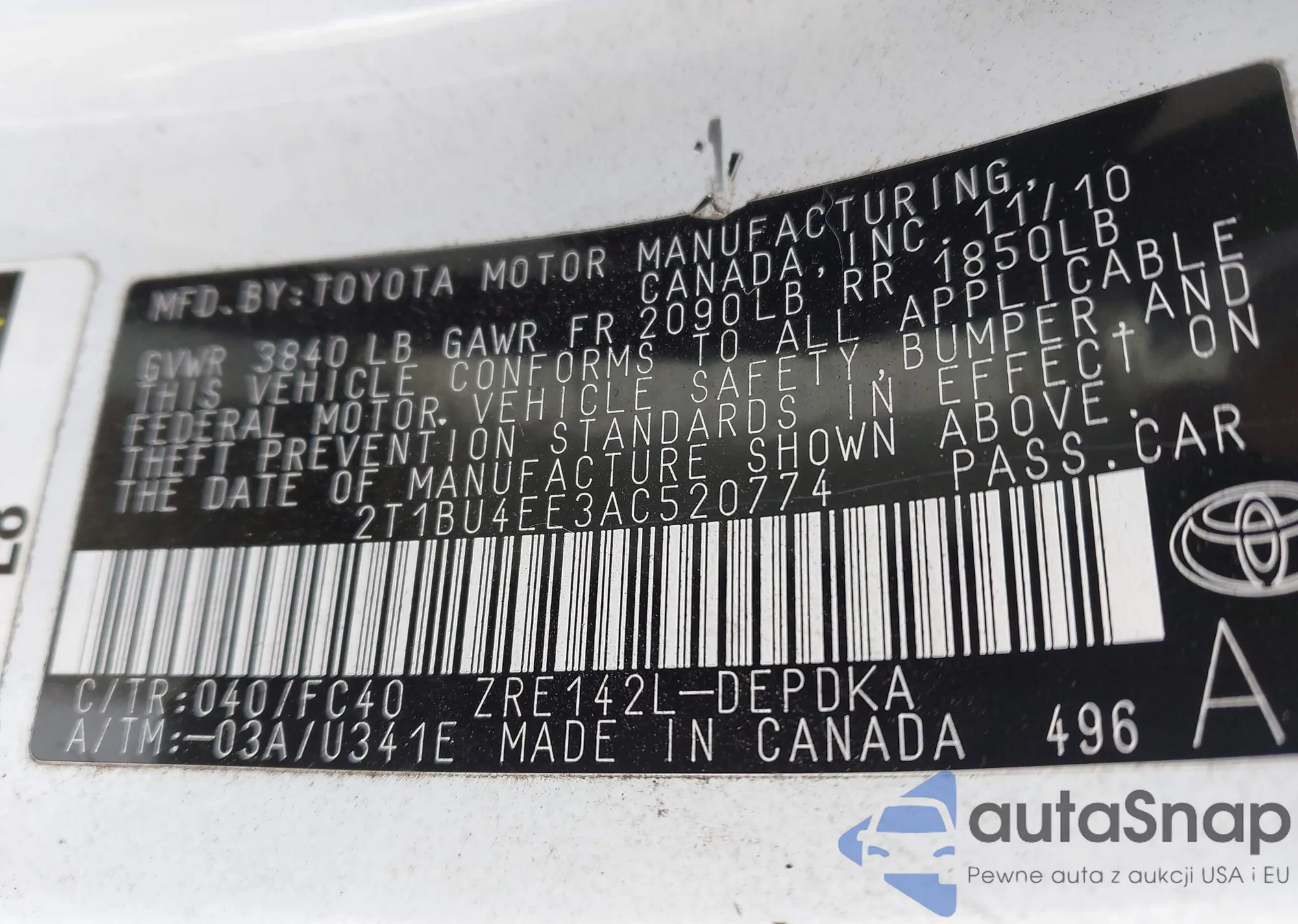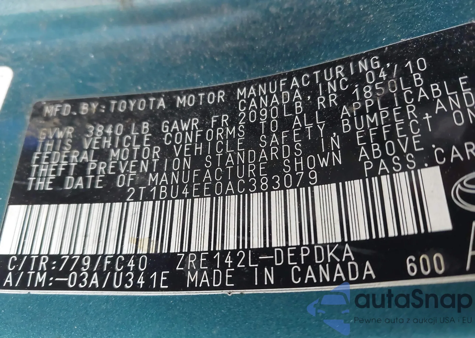 • VIN 2T1BU4EE0AC383079