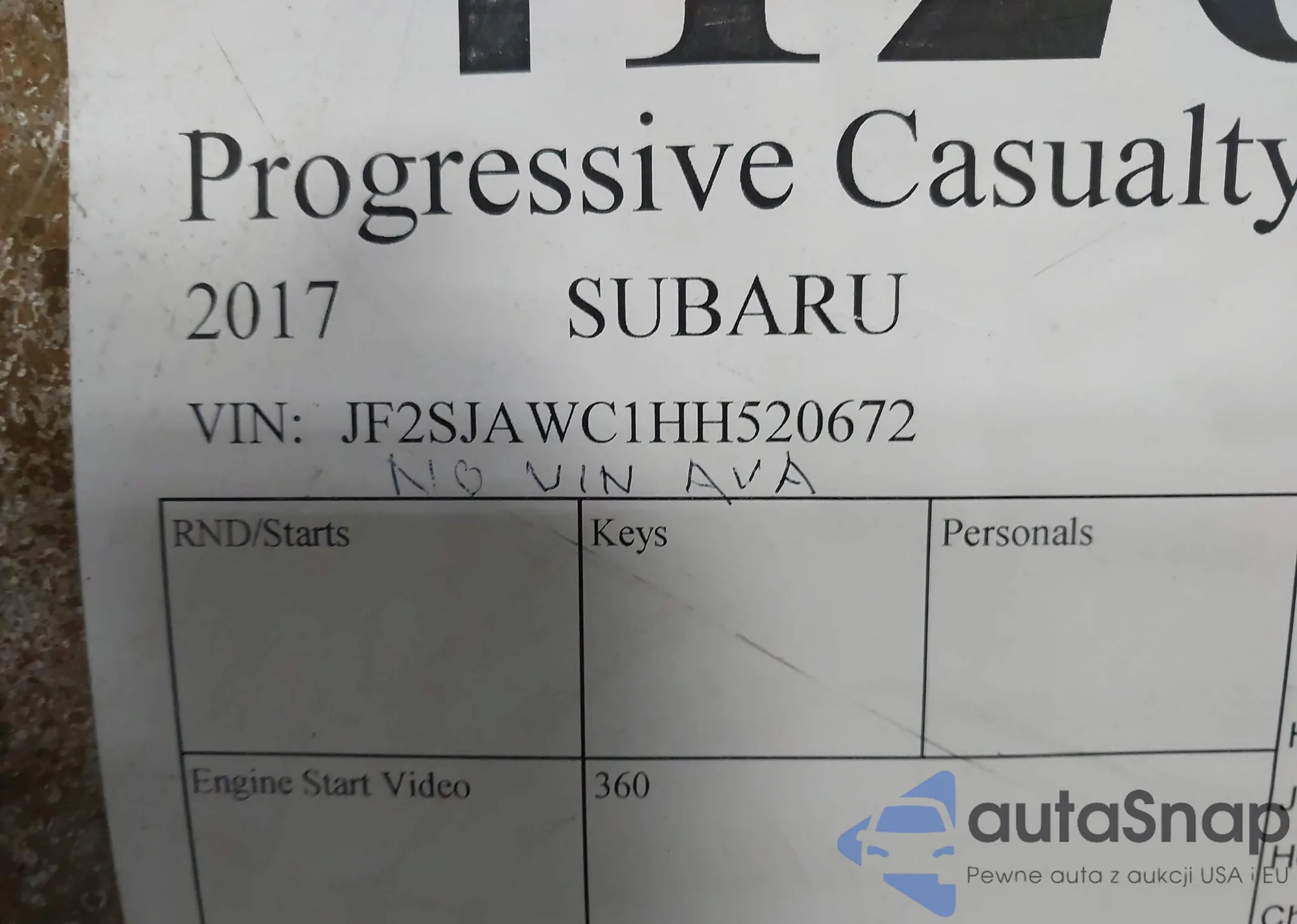 LOT: 41262073 VIN: JF2SJAWC1HH520672