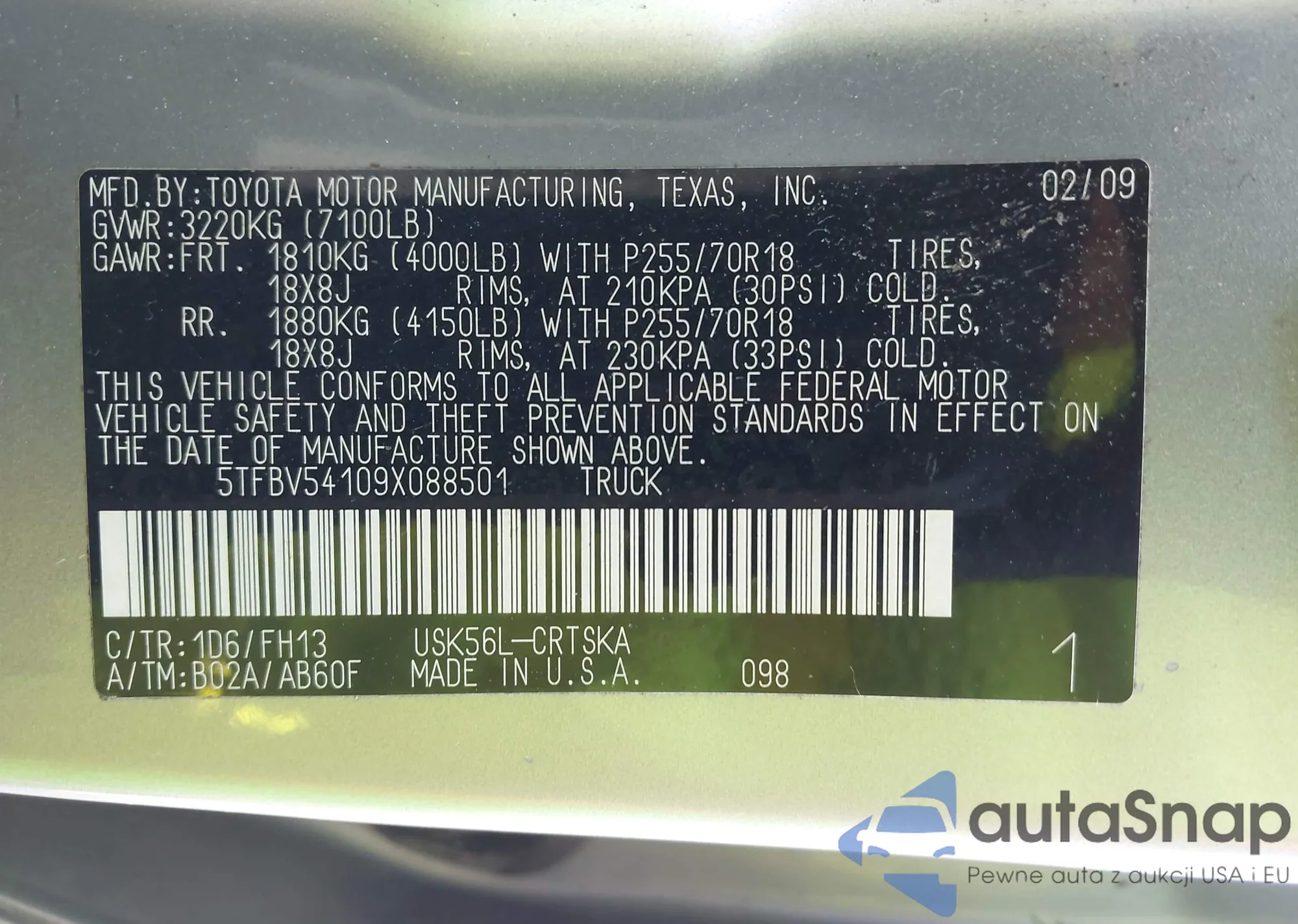 LOT: 43400624 VIN: 5TFBV54109X088501