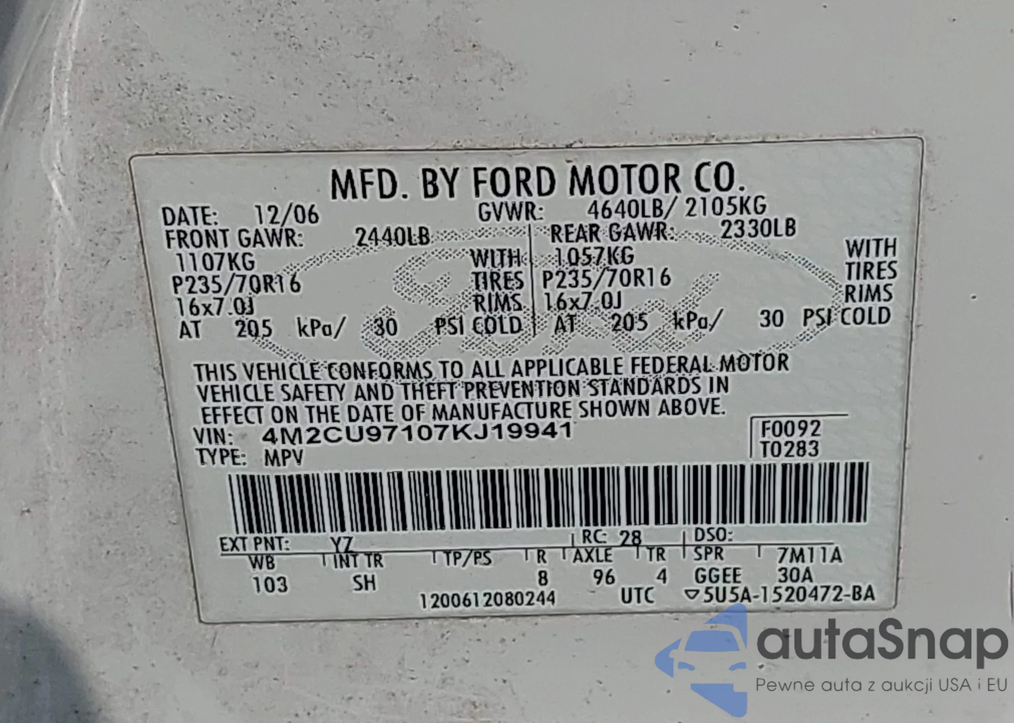 • VIN 2FMDK3GC8ABA73190