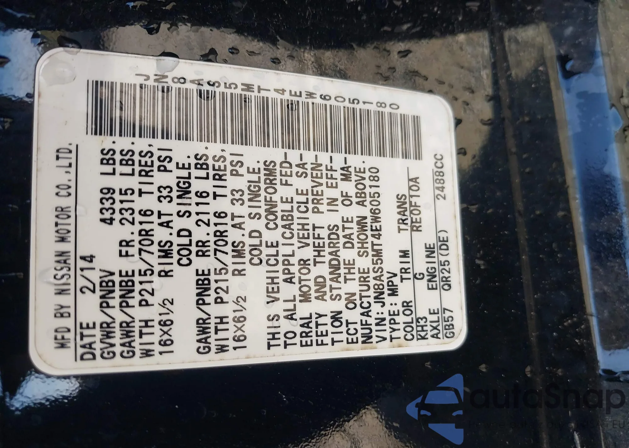 LOT: 43583484 VIN: 1N4AL2AP0AN526934