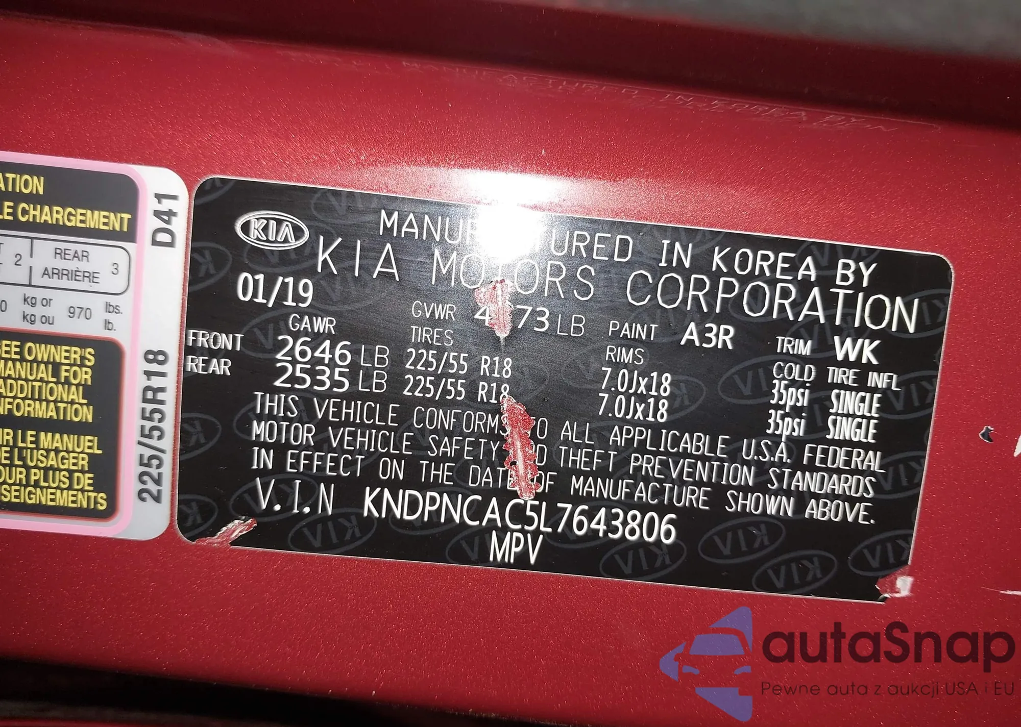 • VIN KNDPNCAC5L7643806