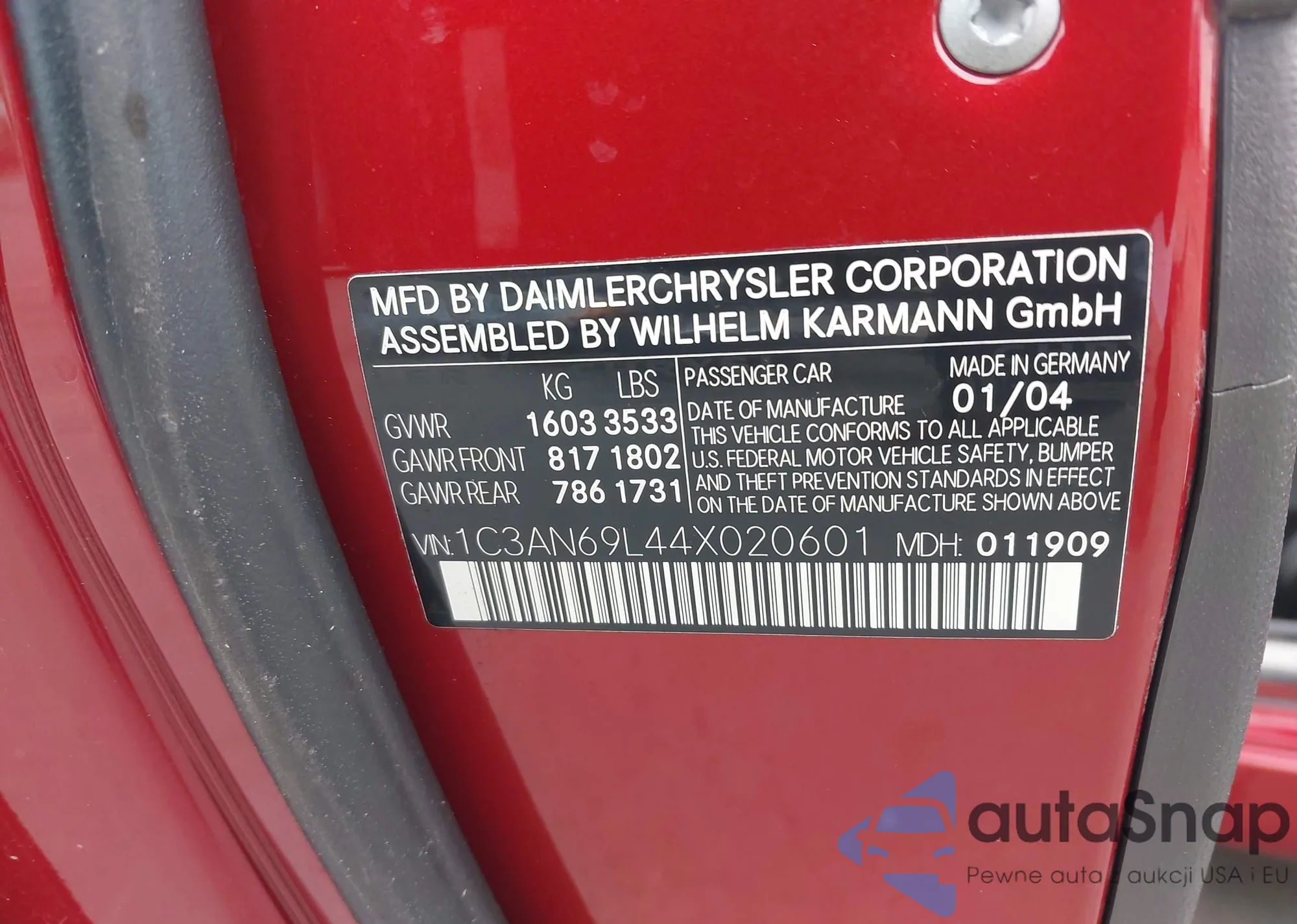 LOT: 43276032 VIN: 1C3AN69L44X020601