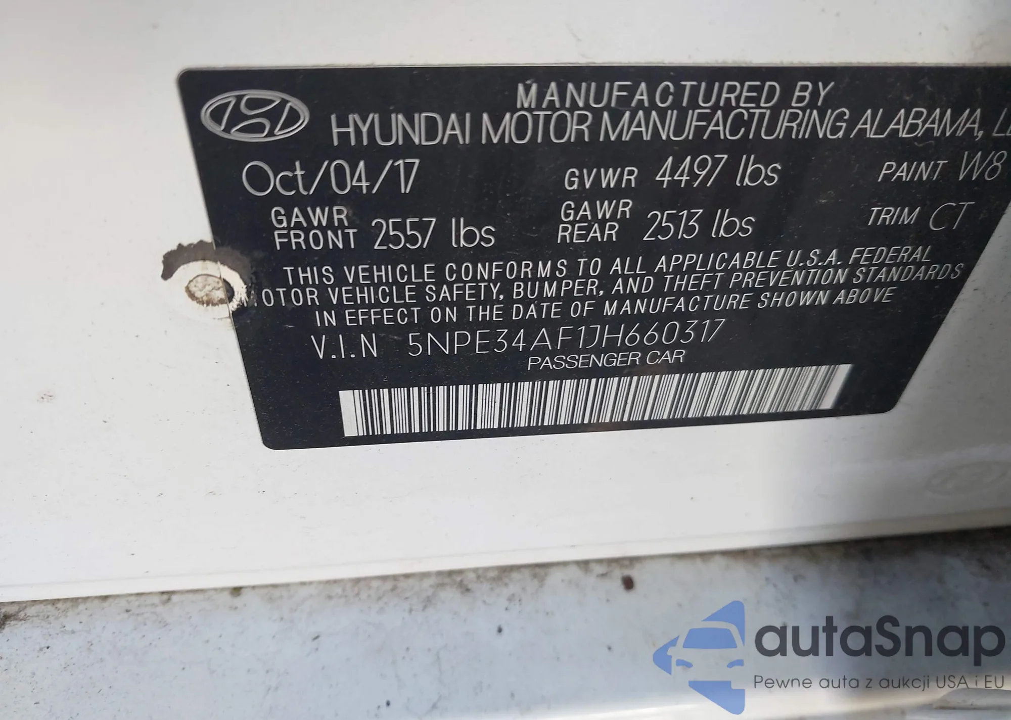 • VIN 5NPE34AF1JH660317