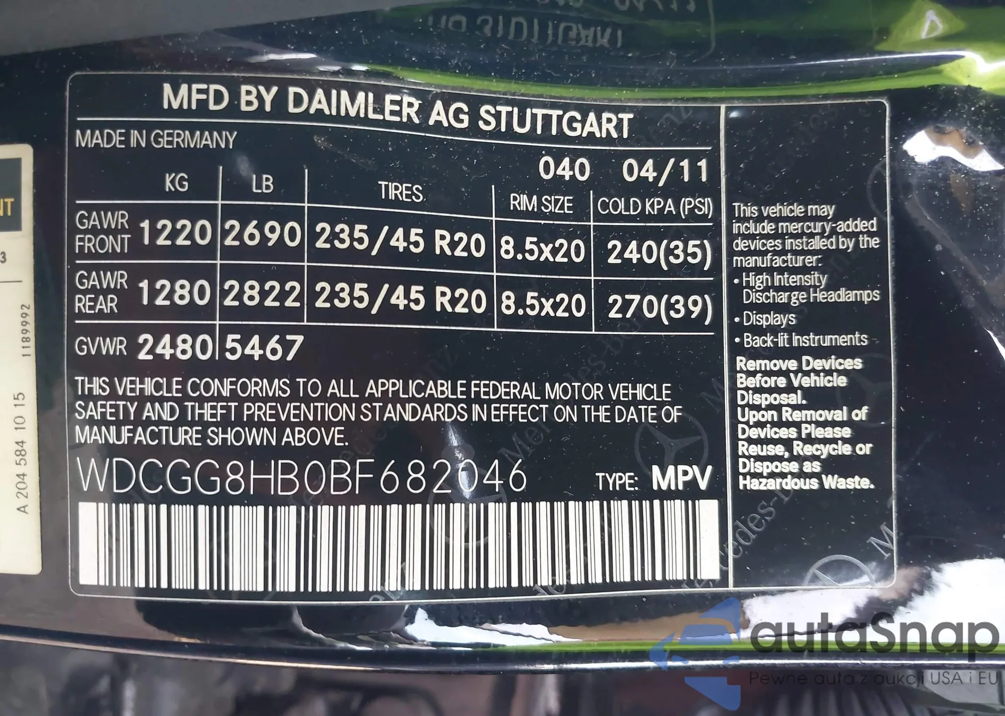 • VIN WDCGG8HB0BF682046