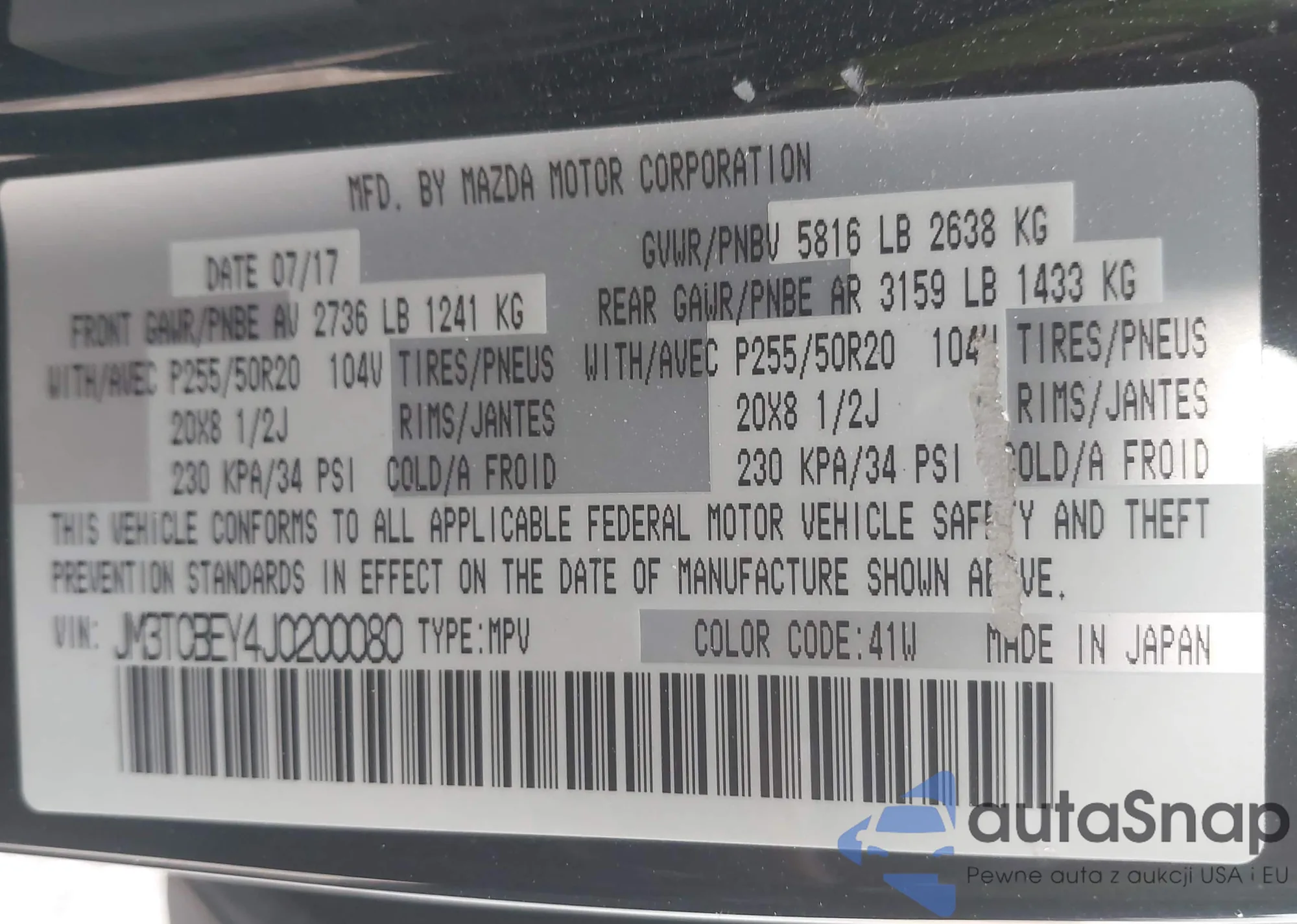 LOT: 43325587 VIN: JM3TCBEY4J0200080