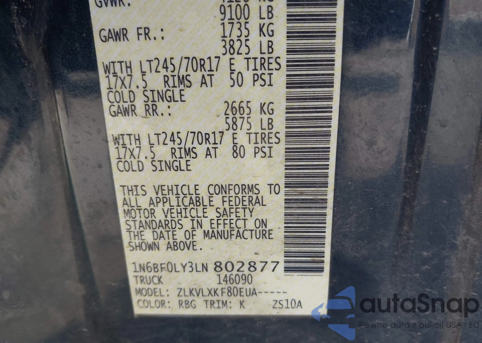 • VIN 1N6BF0LY3LN802877