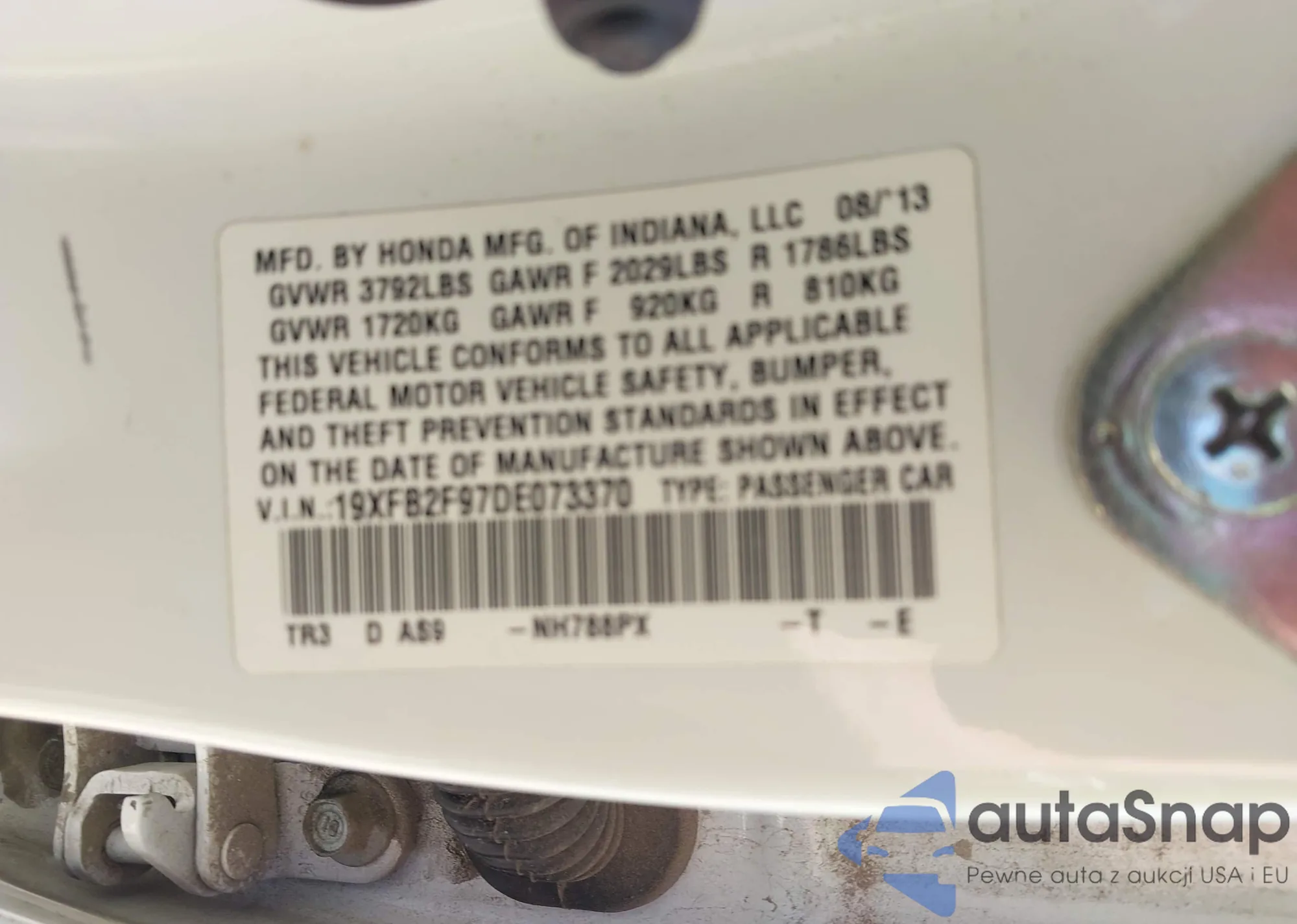 LOT: 43347531 VIN: 19XFB2F97DE073370