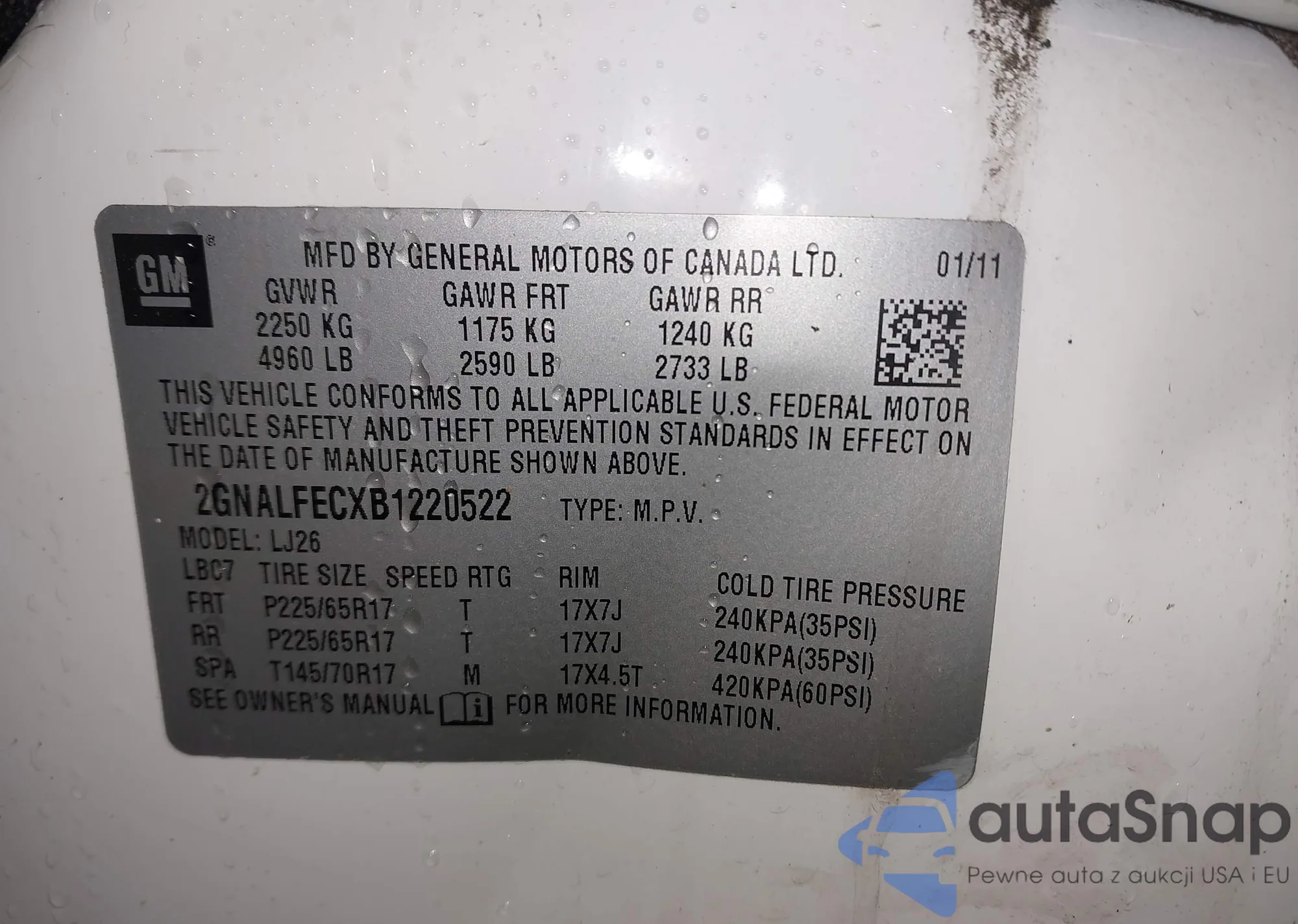 • VIN 2GNALFECXB1220522