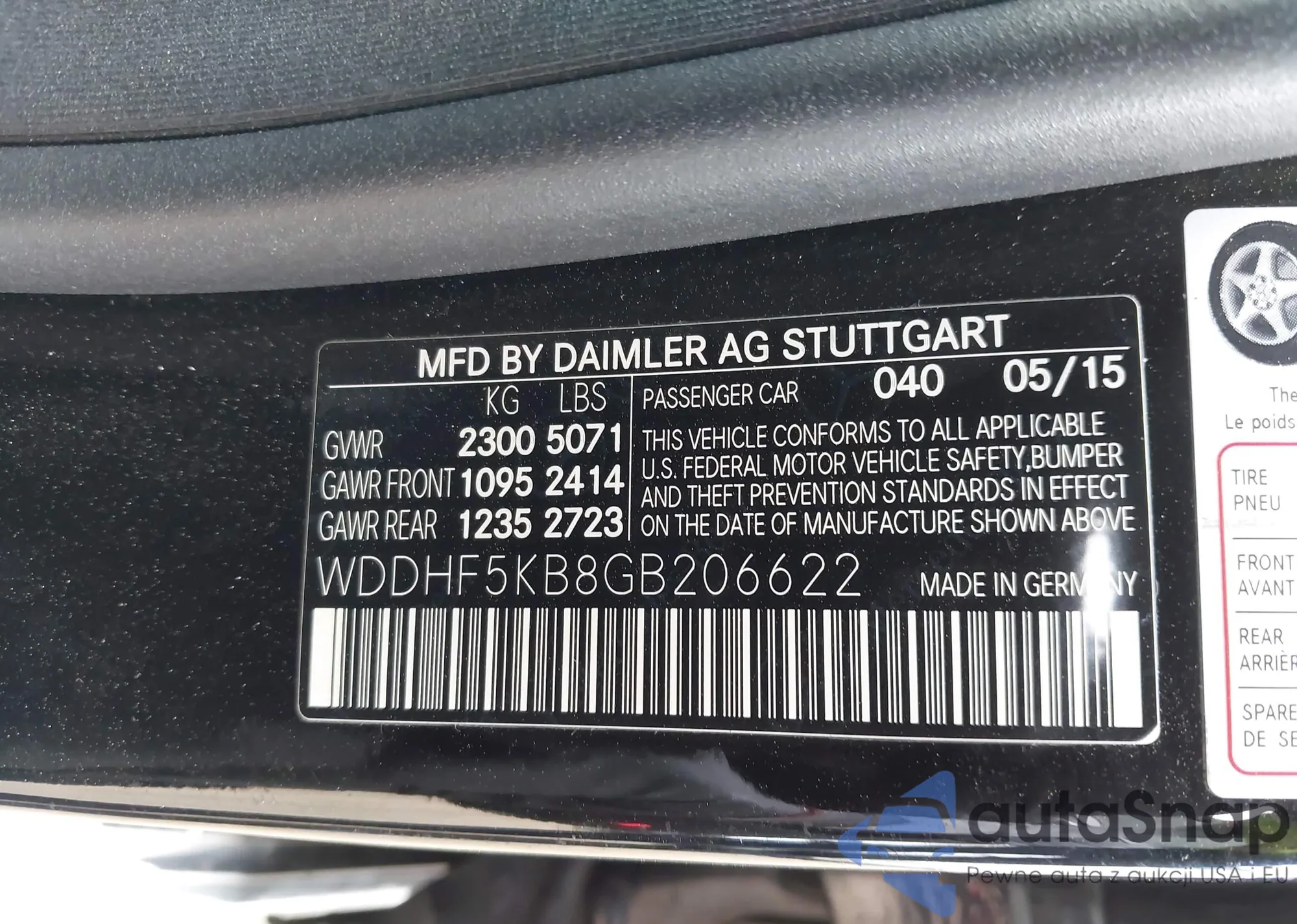 • VIN WDDHF5KB8GB206622