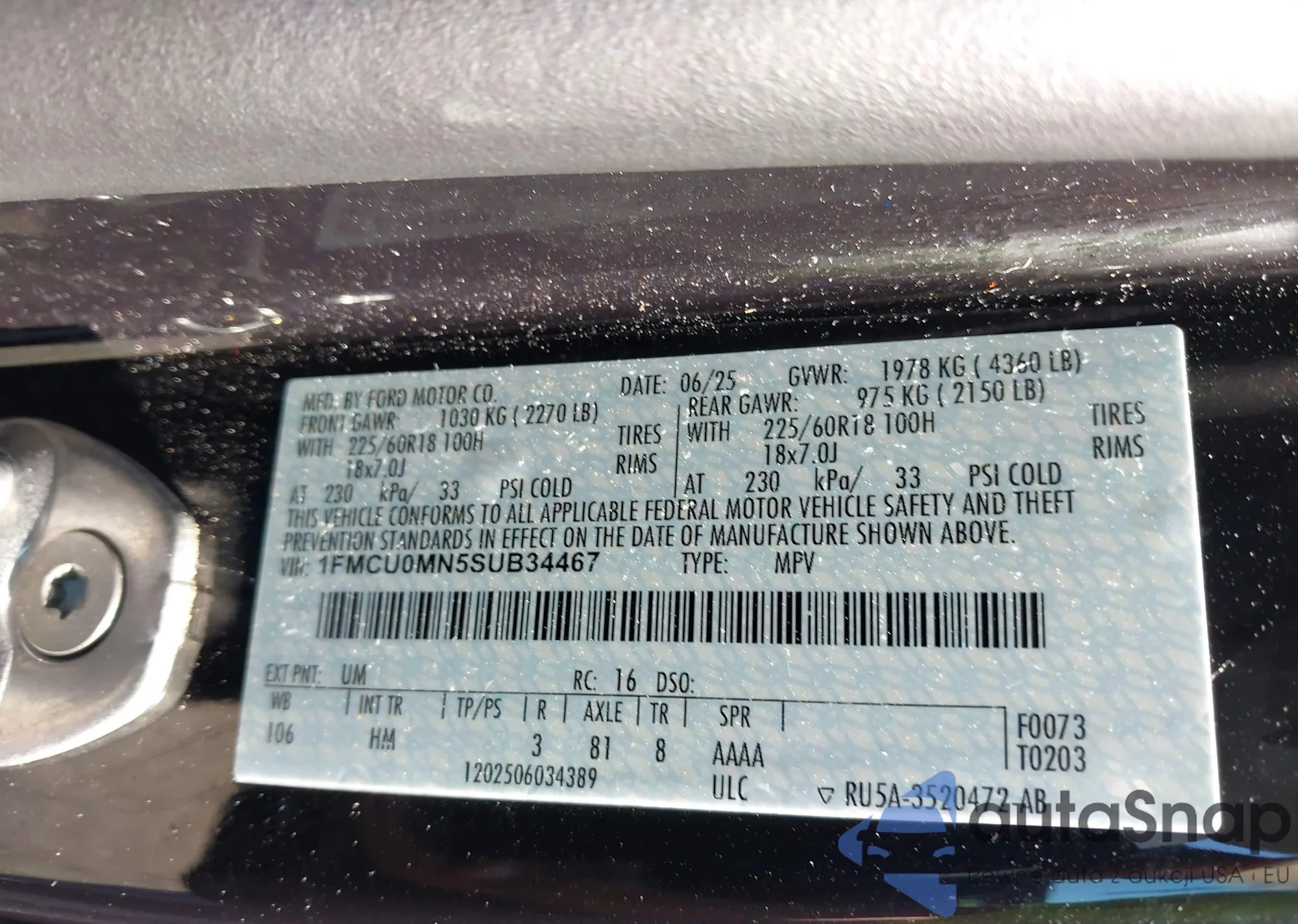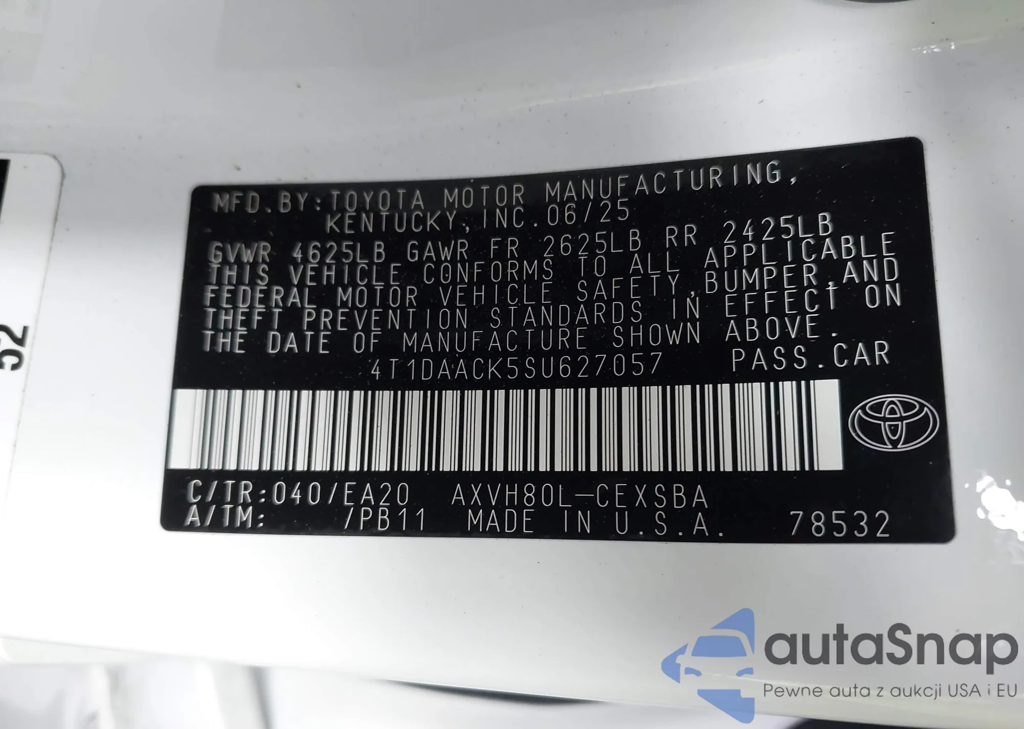 • VIN 4T1DAACK5SU627057