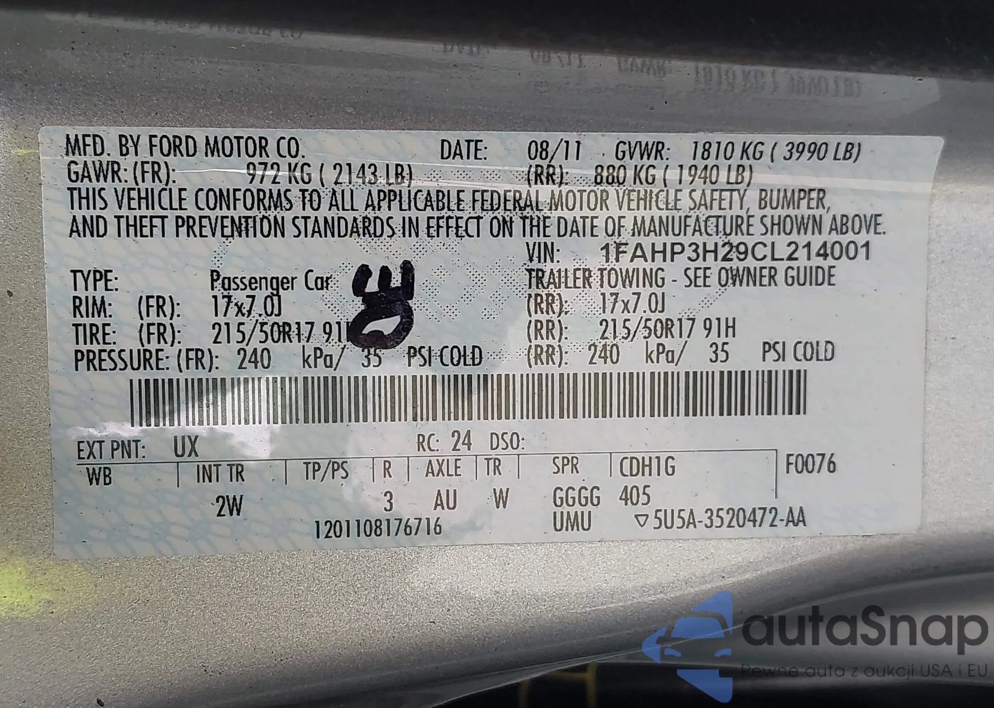 • VIN 1FAHP3H29CL214001