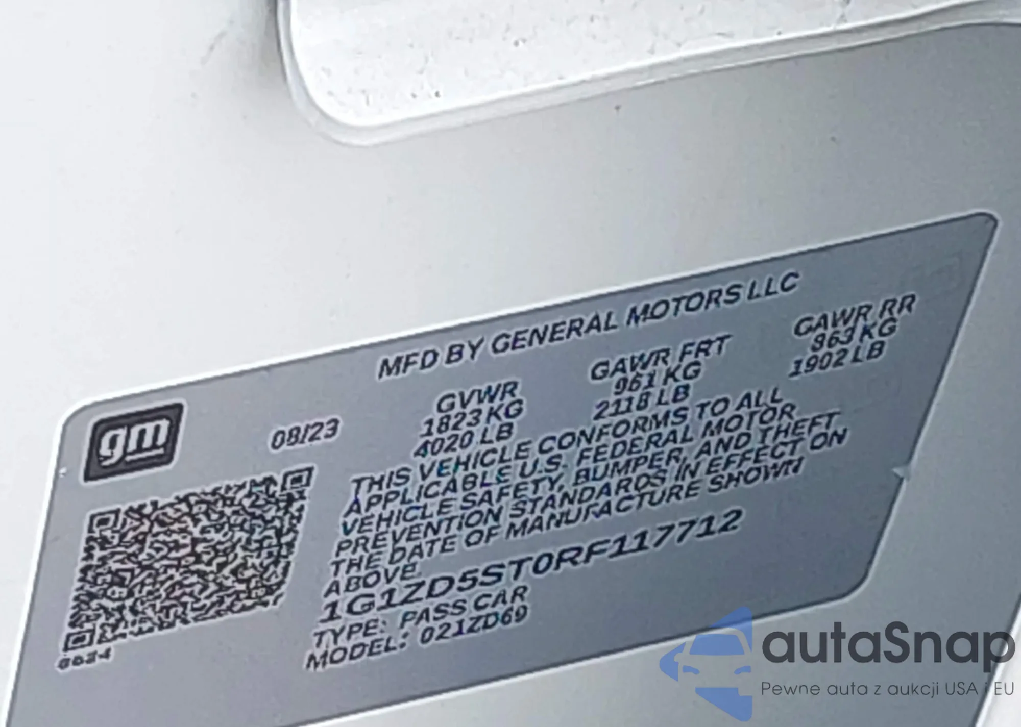 LOT: 43773185 VIN: 1G1ZD5ST0RF117712
