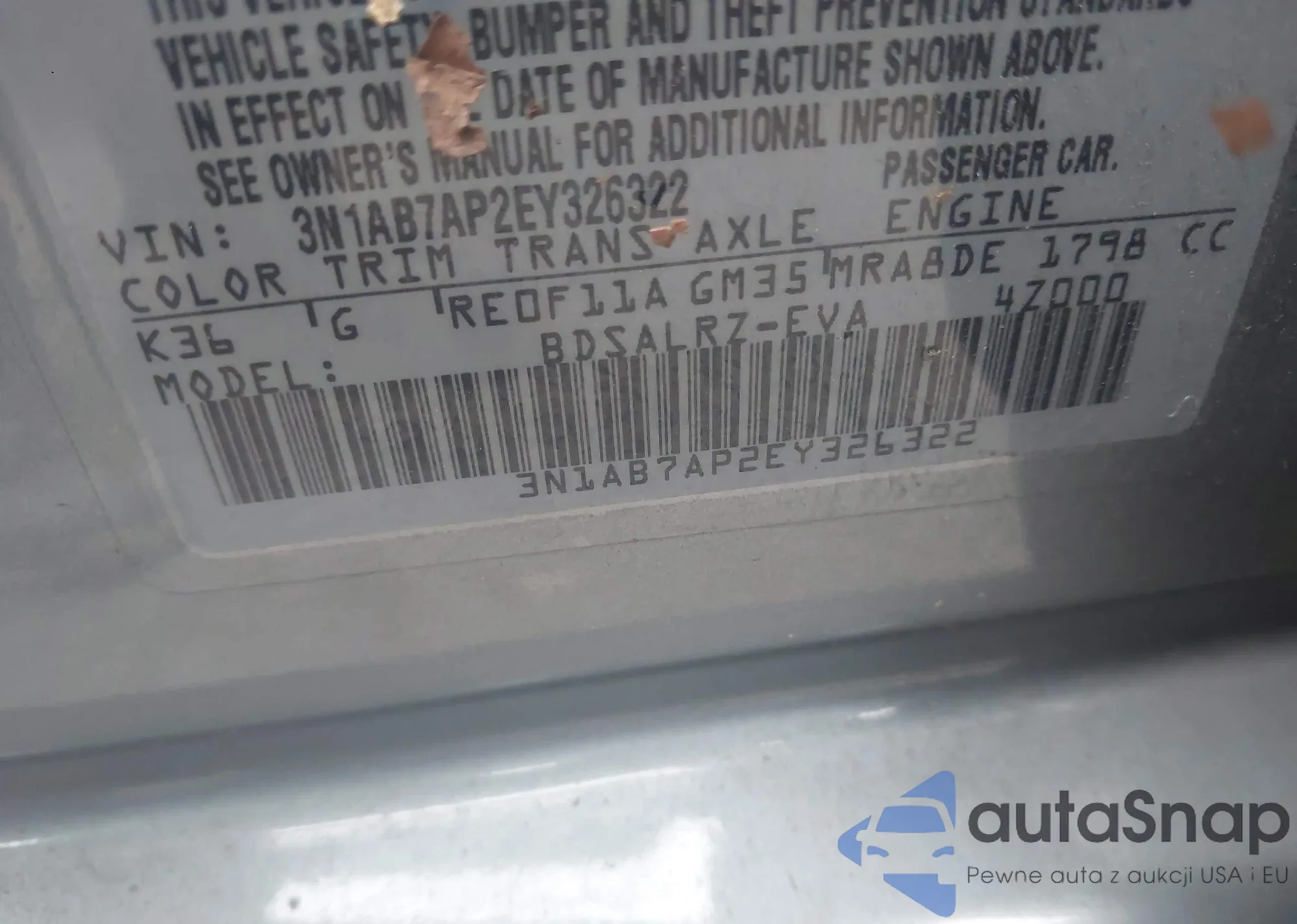 • VIN 3N1AB7AP1KY339977