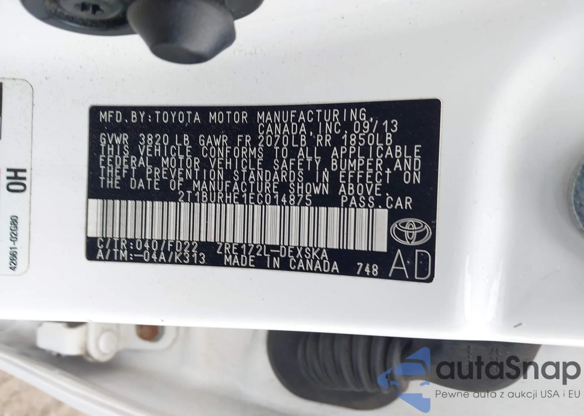 LOT: 43561982 VIN: 2T1BURHE1EC014875