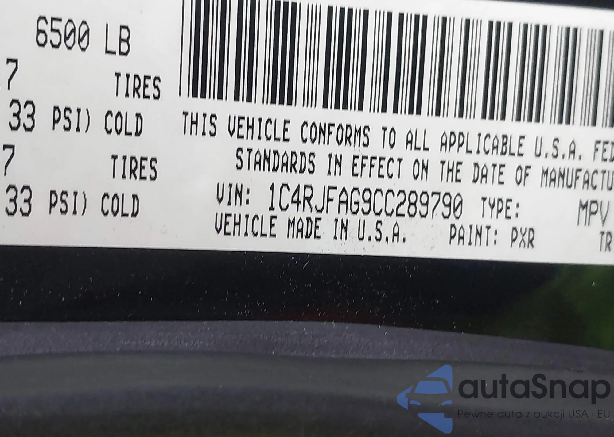 • VIN 1C4RJFAG9CC289790