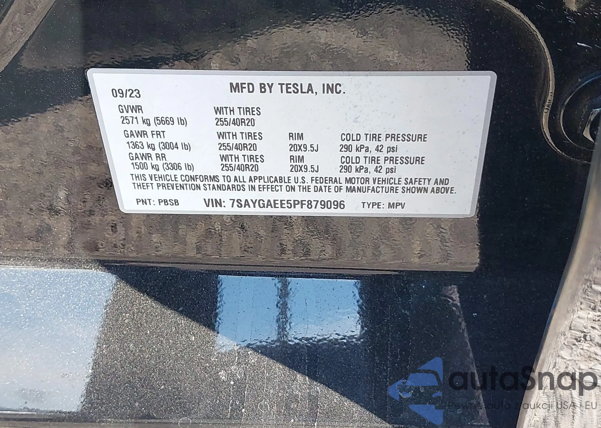 • VIN 7SAYGAEE5PF879096