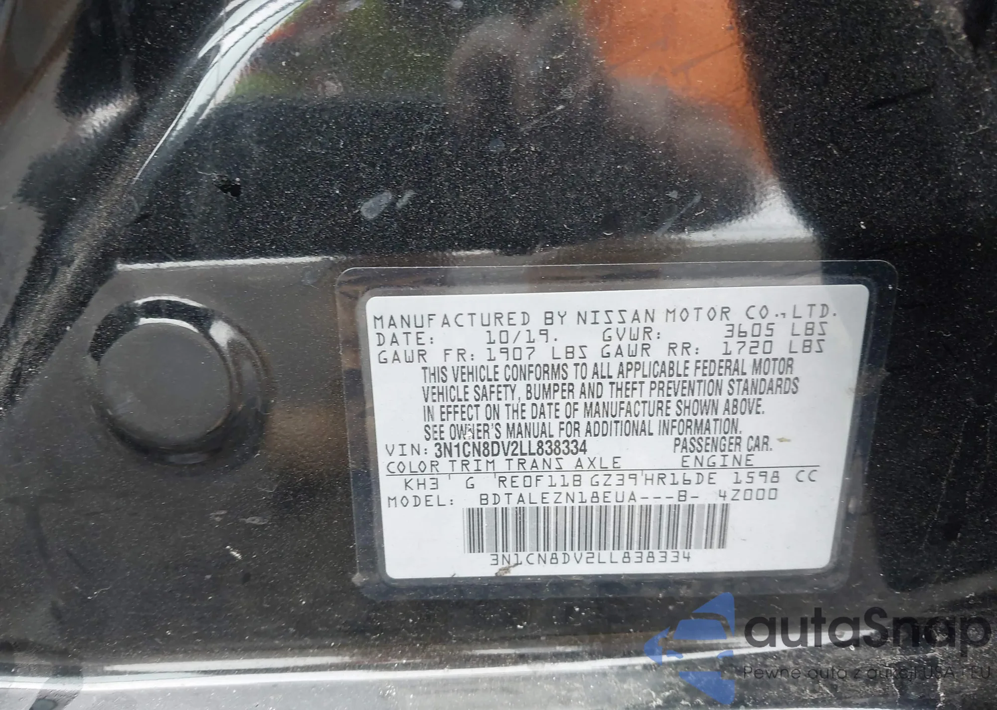 • VIN 3N1CN8DV2LL838334
