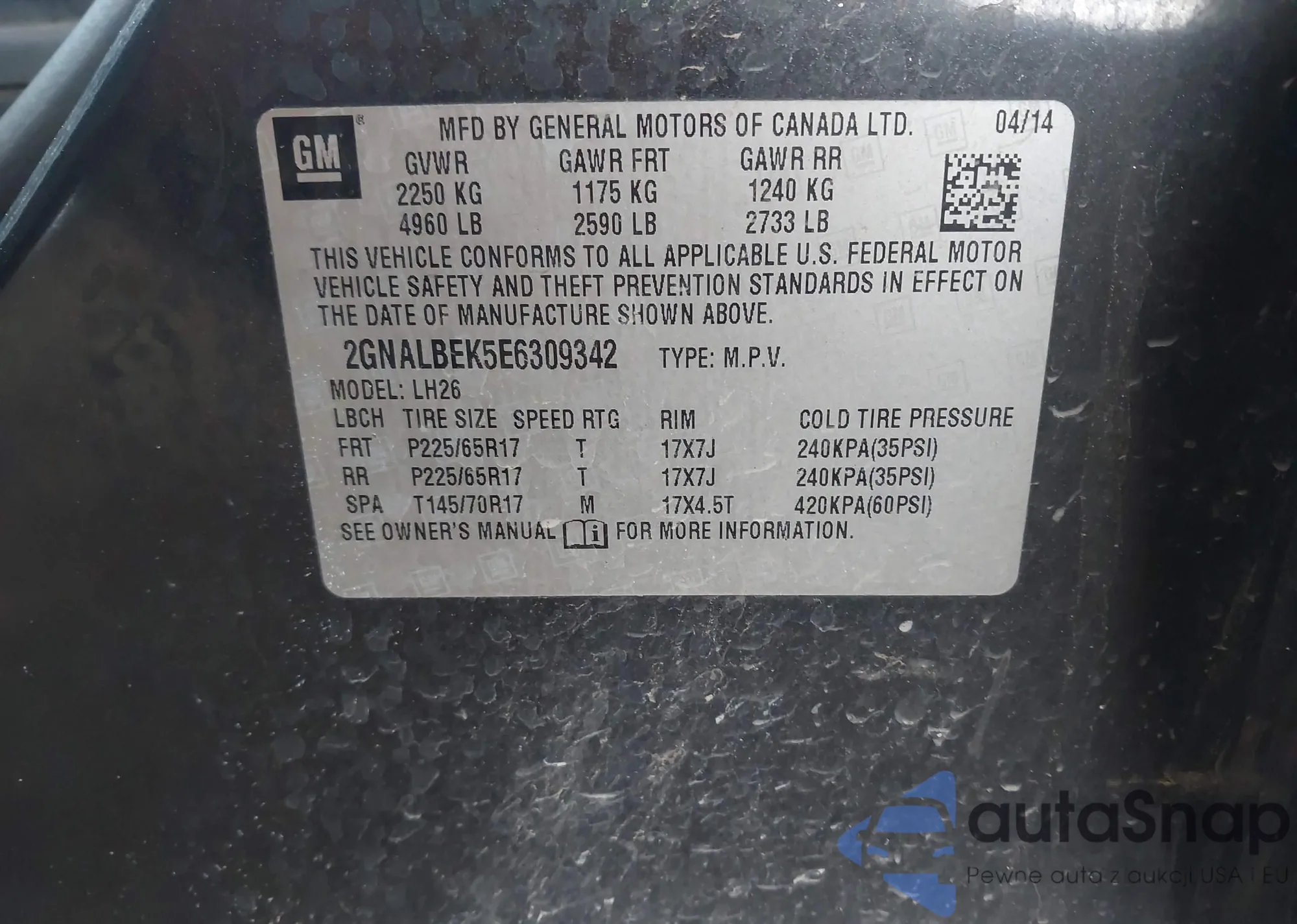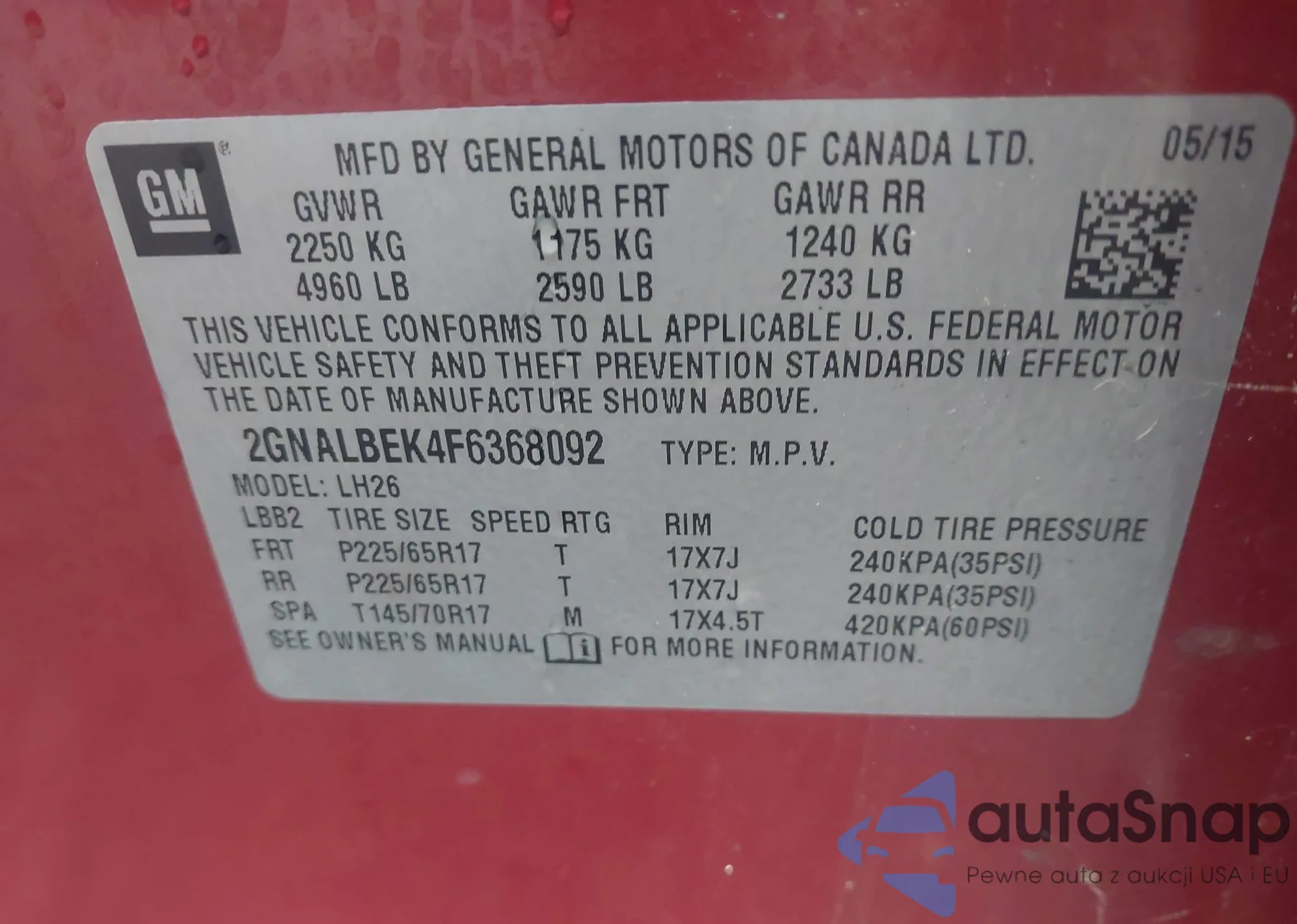 • VIN 2GNALBEK4F6368092