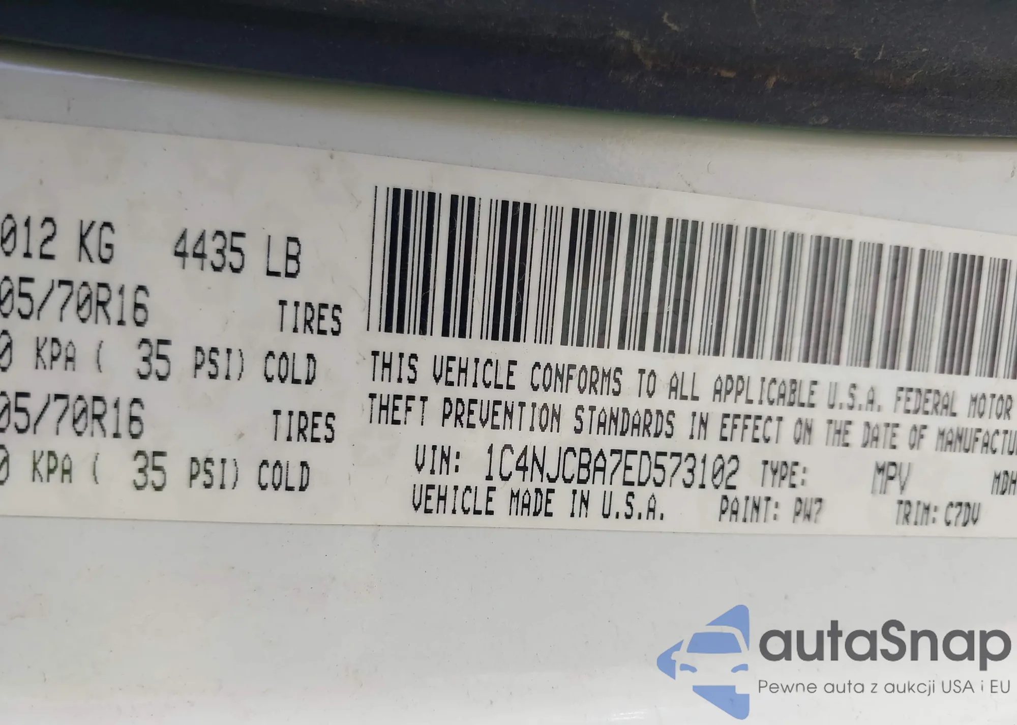 • VIN 1C4NJCBA7ED573102