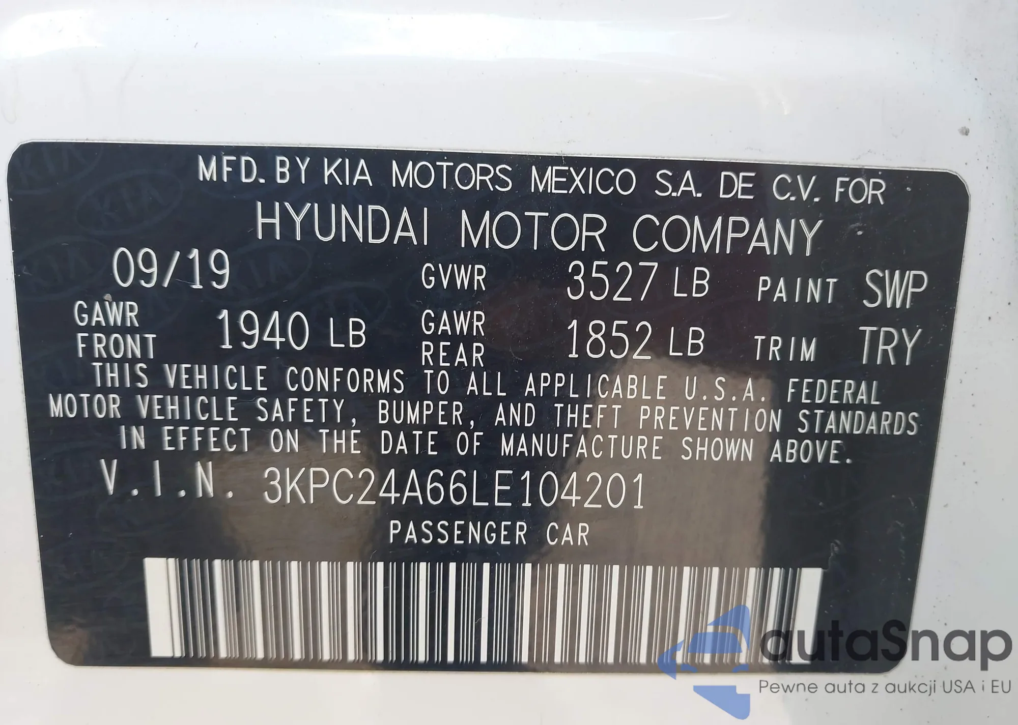 • VIN 3KPC24A66LE104201