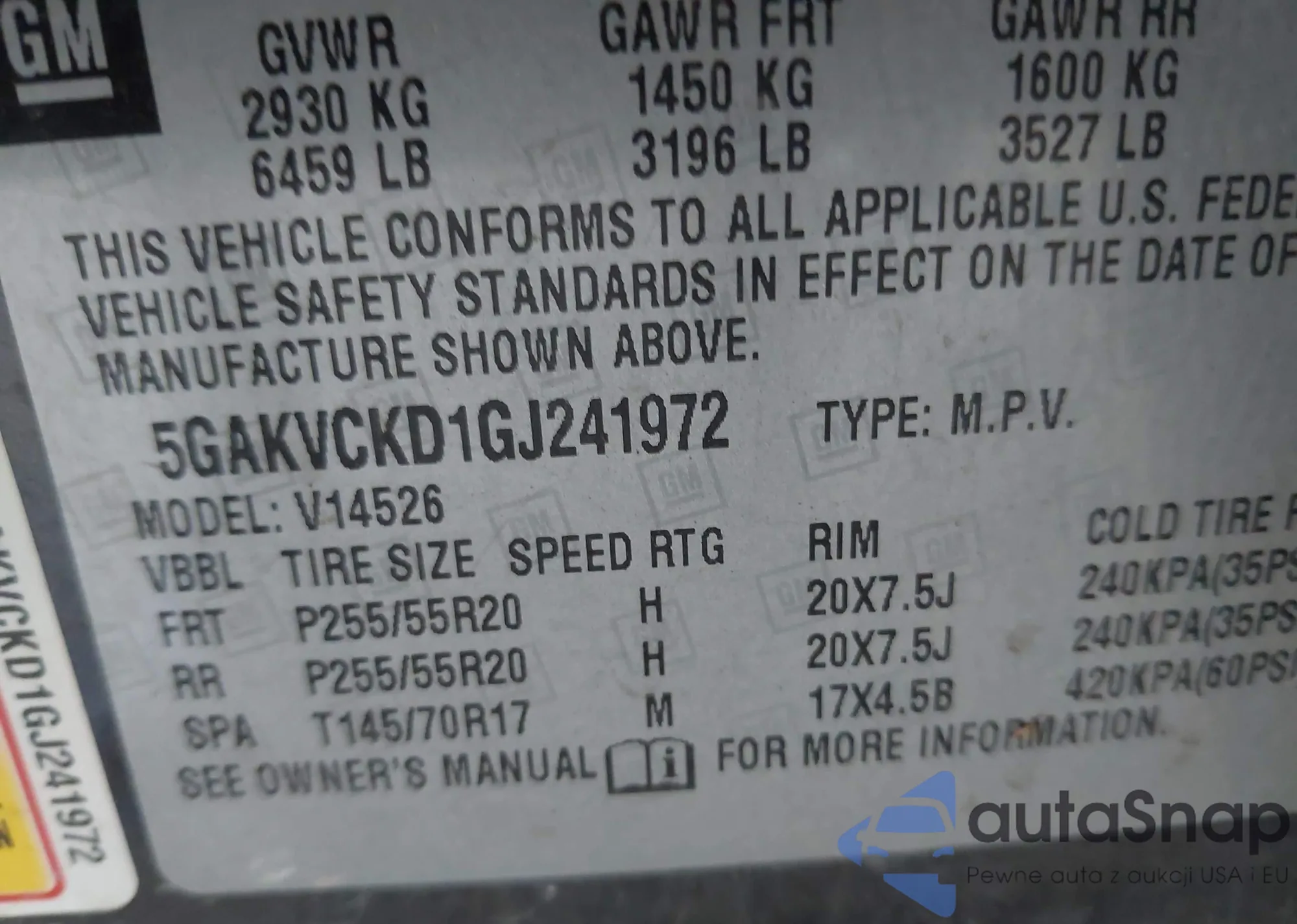 • VIN 5GAKVCKD1GJ241972