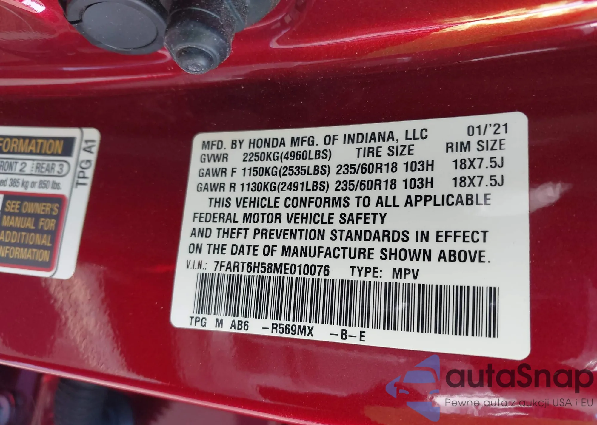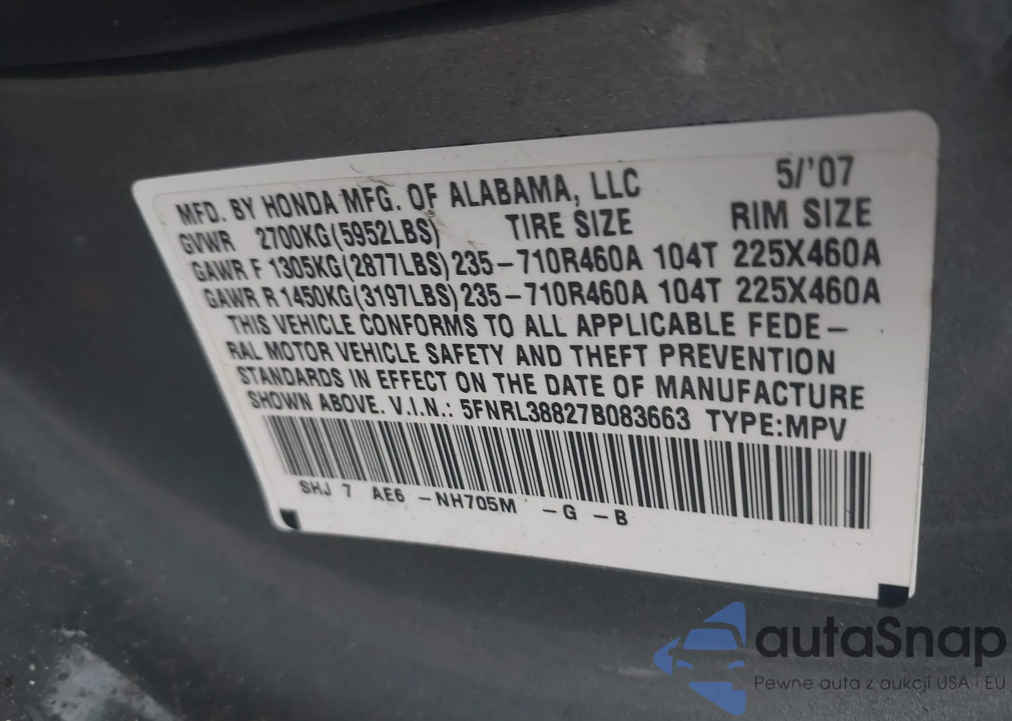 • VIN 5FNRL38827B083663