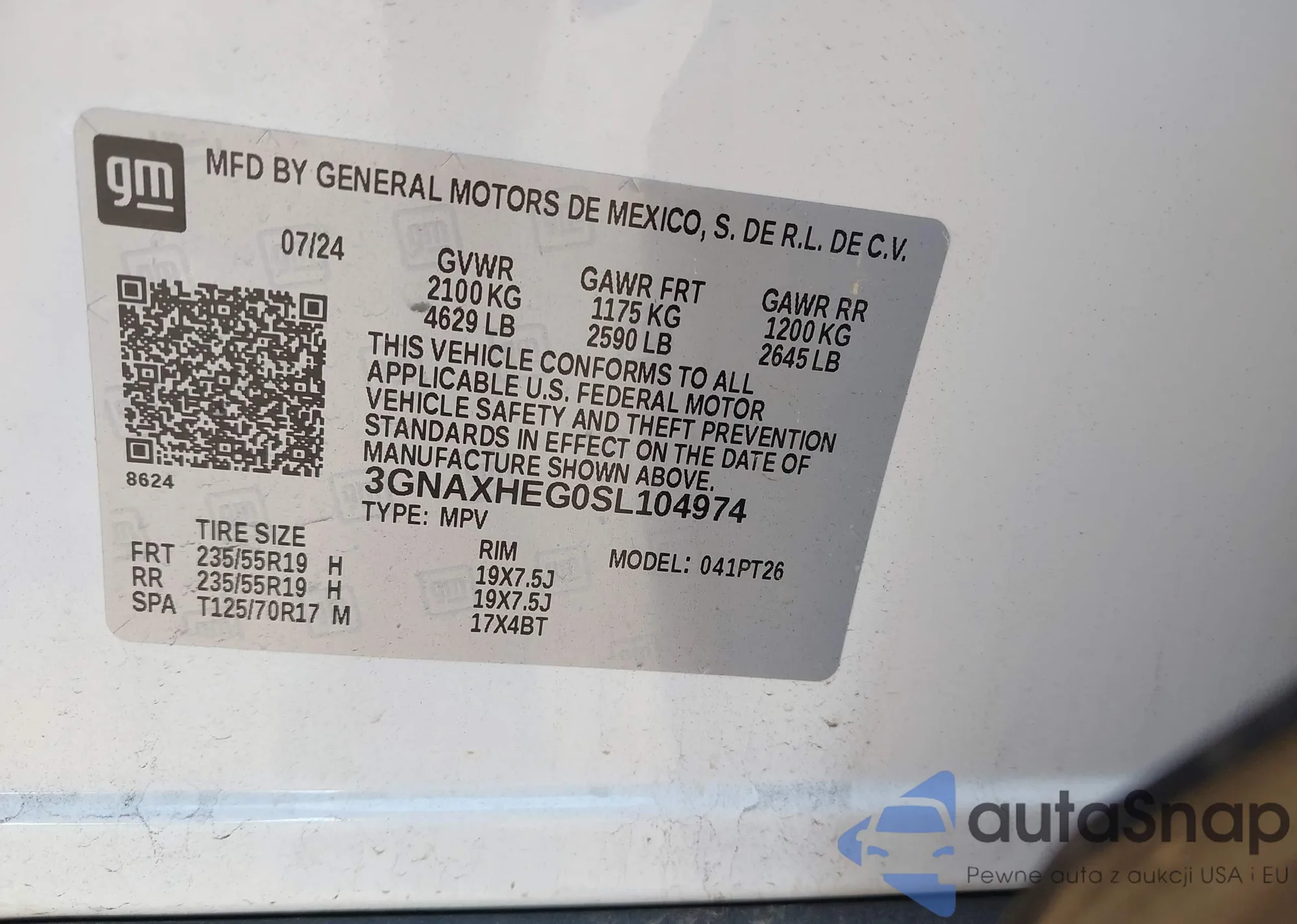 • VIN 3GNAXHEG0SL104974