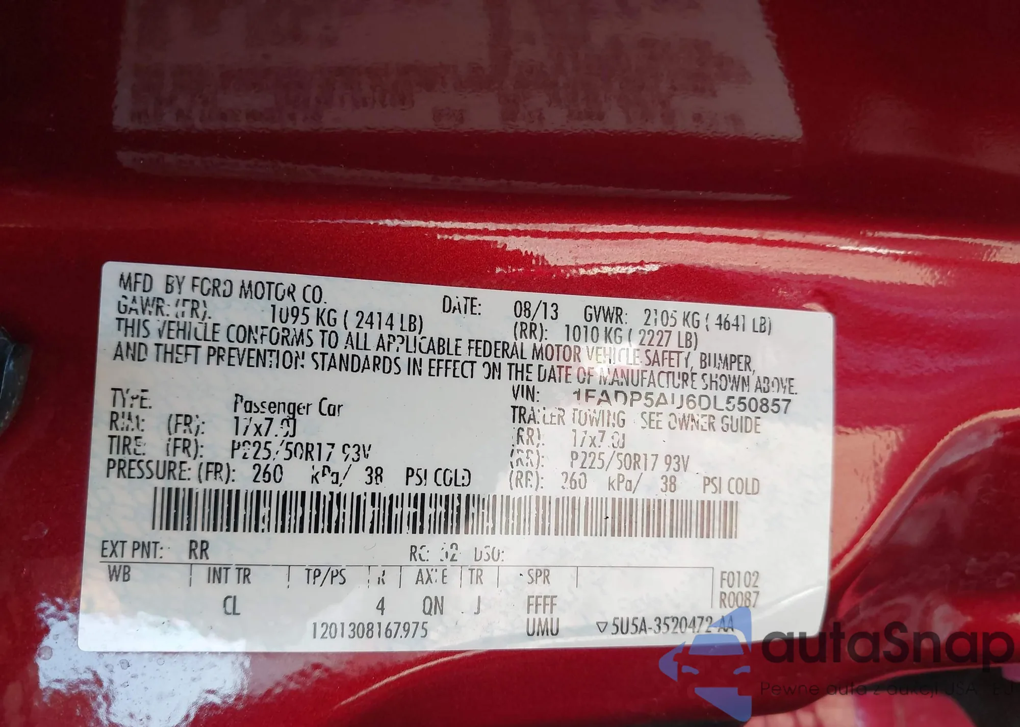 • VIN 1FADP5AU6DL550857