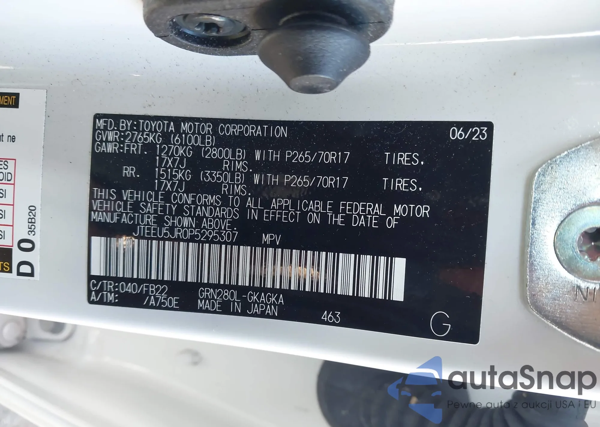 LOT: 43296178 VIN: JTEEU5JR0P5295307