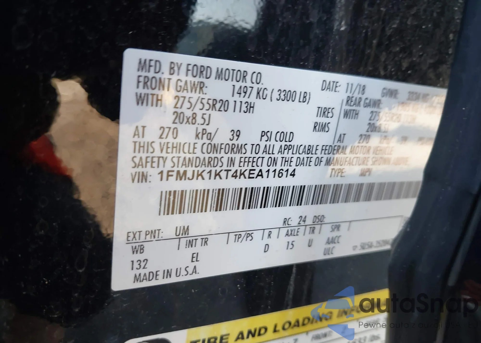 • VIN 1FMJK1KT4KEA11614