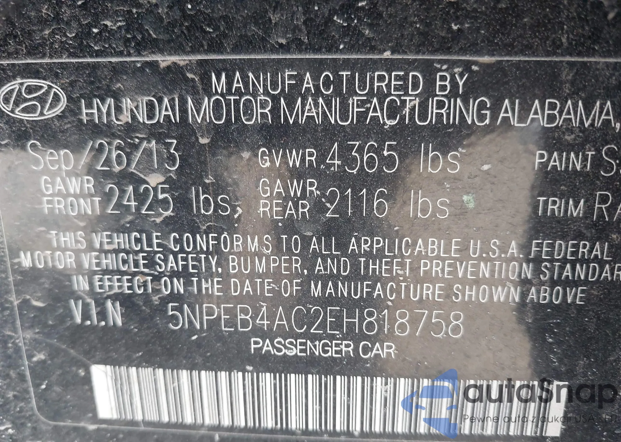 • VIN 5NPEB4AC2EH818758
