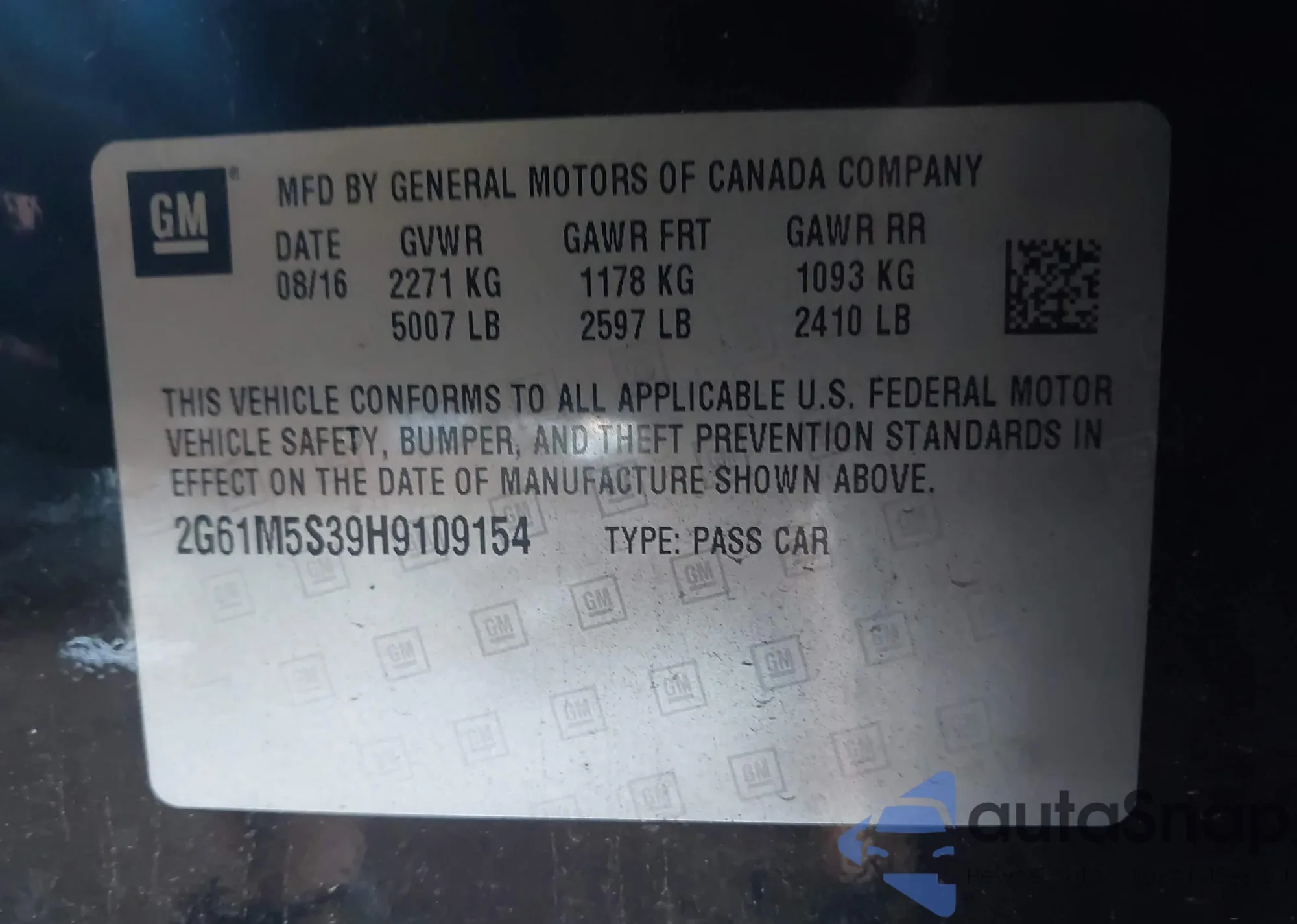 • VIN 2G61M5S39H9109154