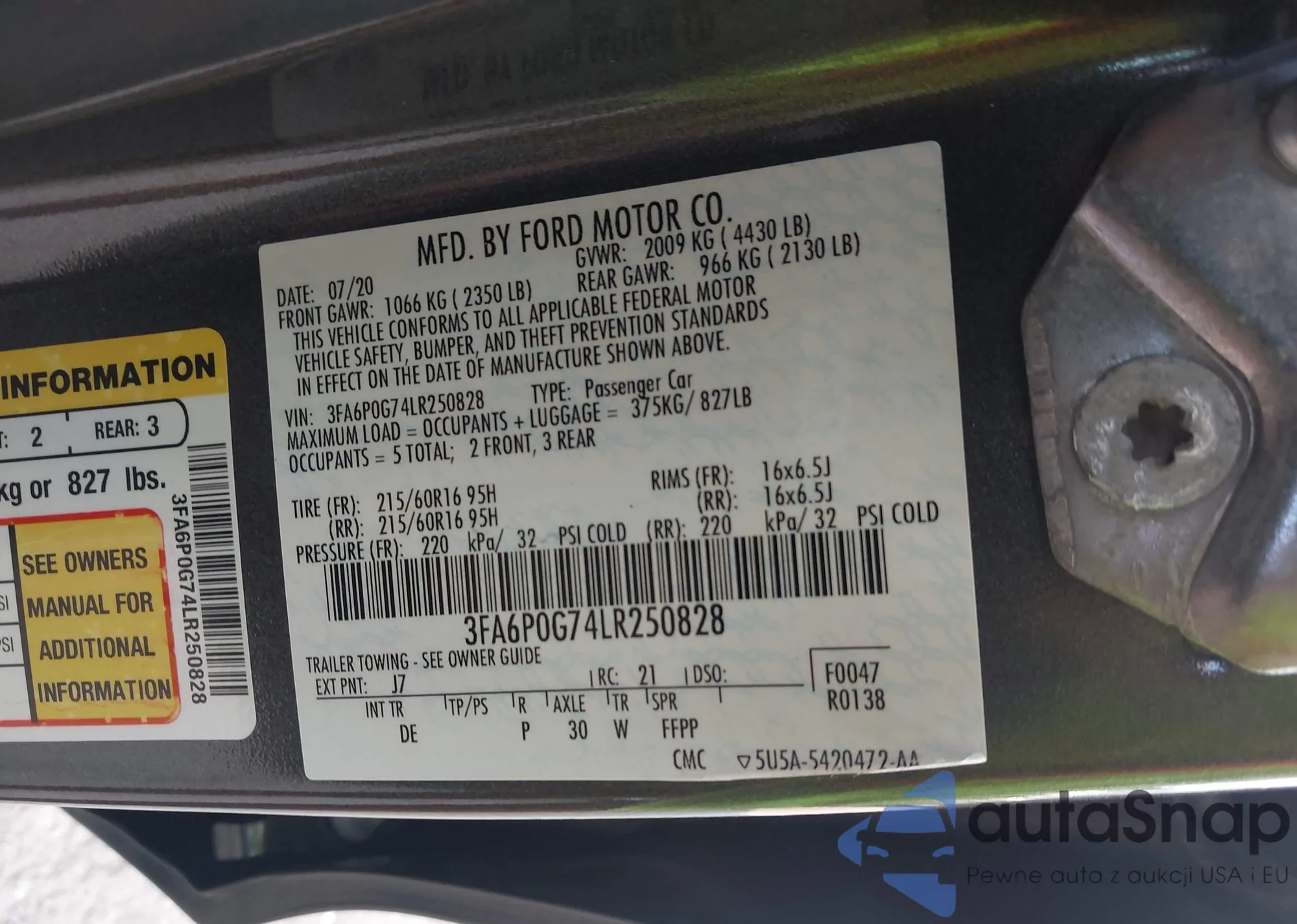 LOT: 43264273 VIN: KM8J3CA46LU206981