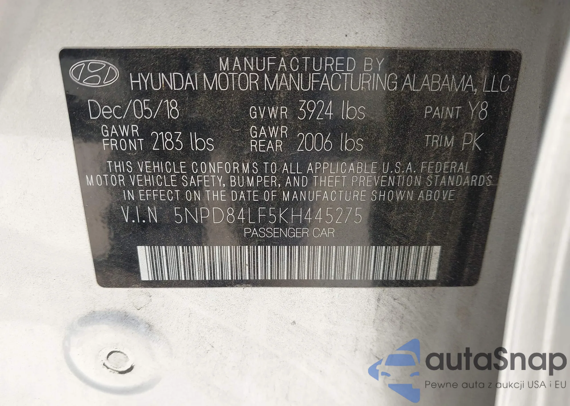 • VIN 5NPD84LF5KH445275