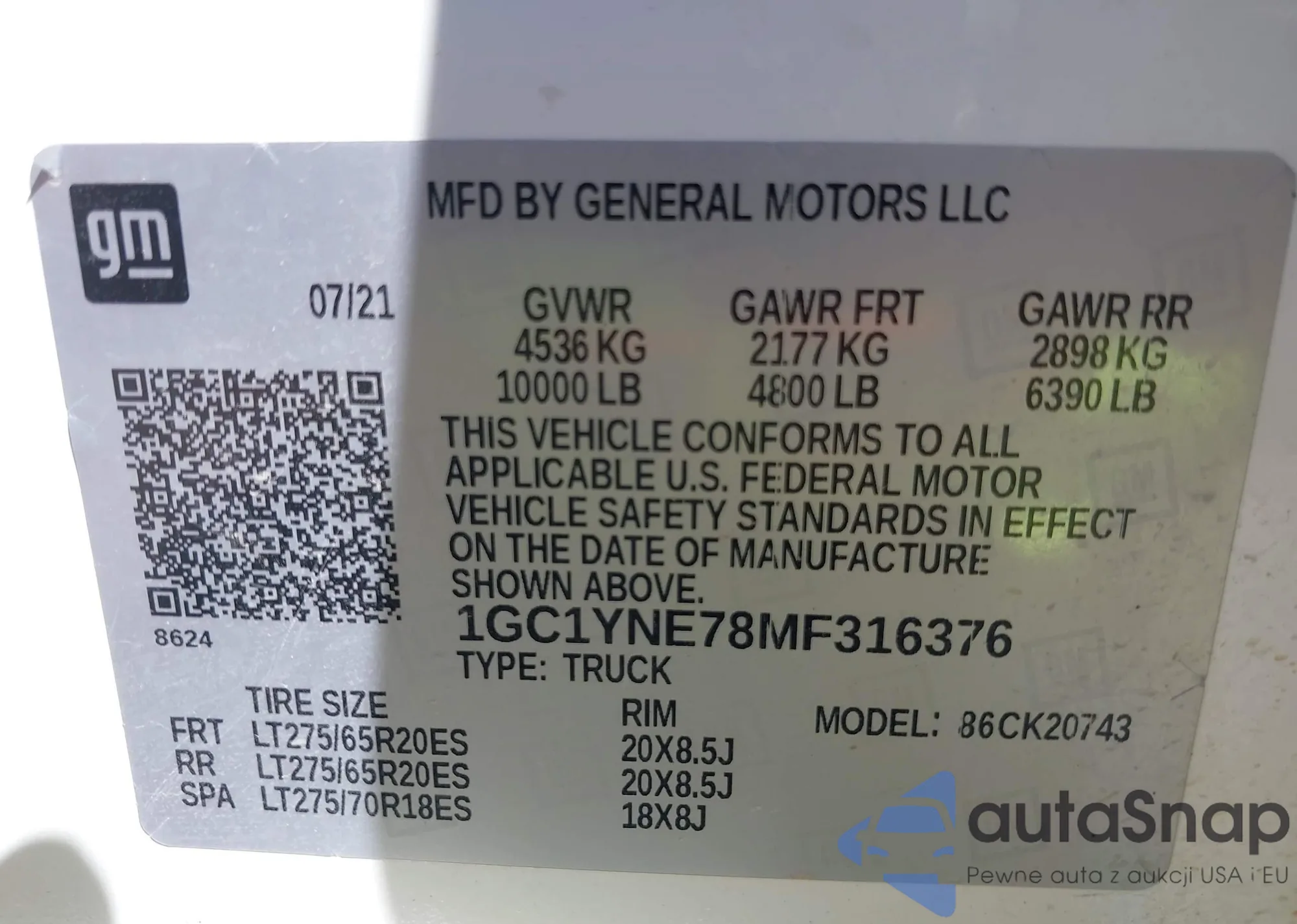 LOT: 43325420 VIN: 1GC1YNE78MF316376