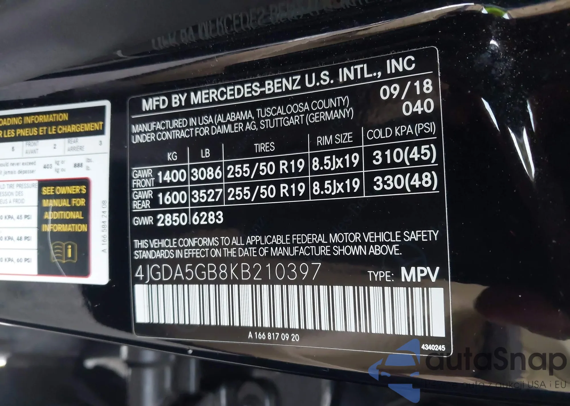 • VIN 4JGDA5GB8KB210397