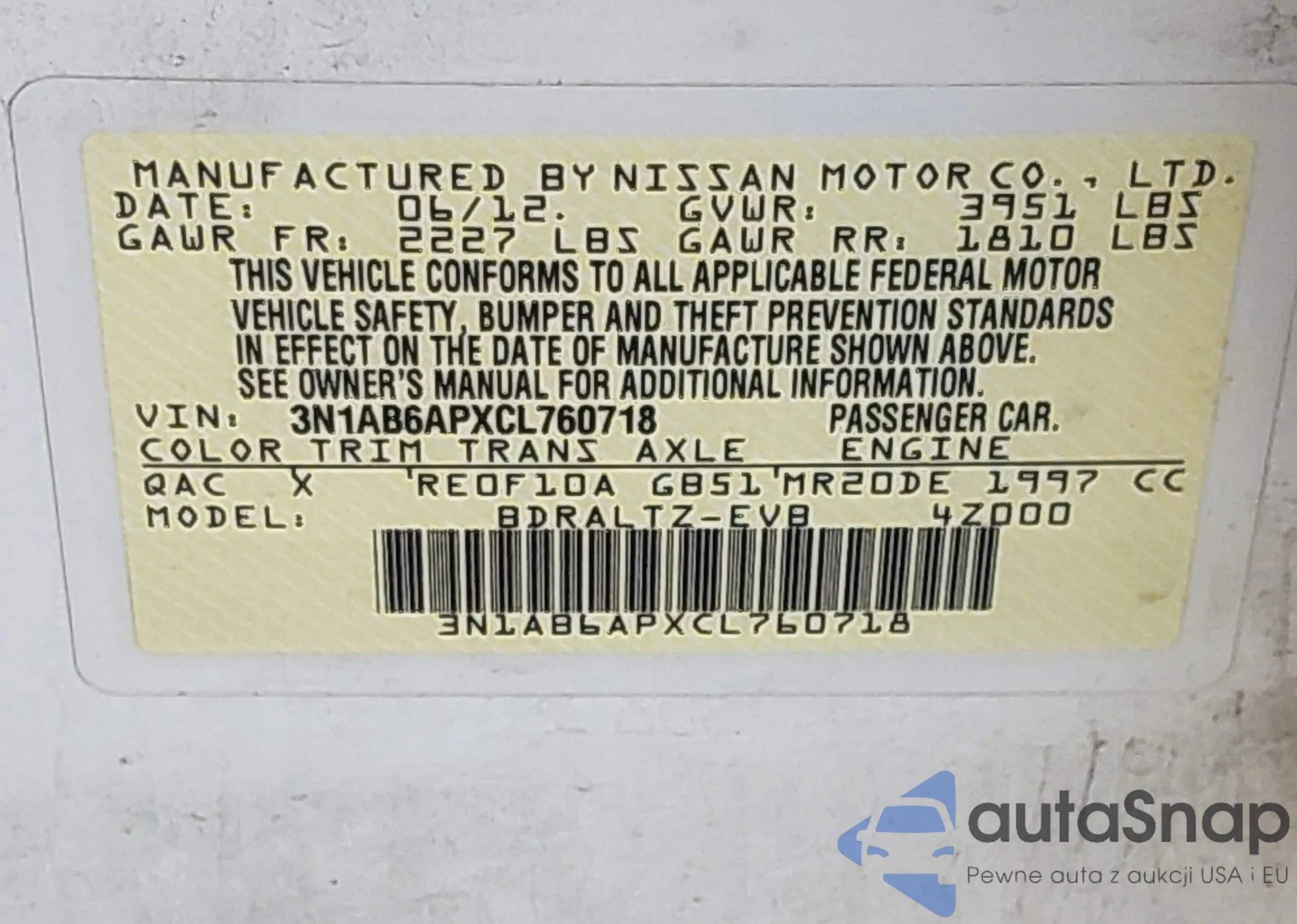 LOT: 43489311 VIN: 3N1AB6APXCL760718