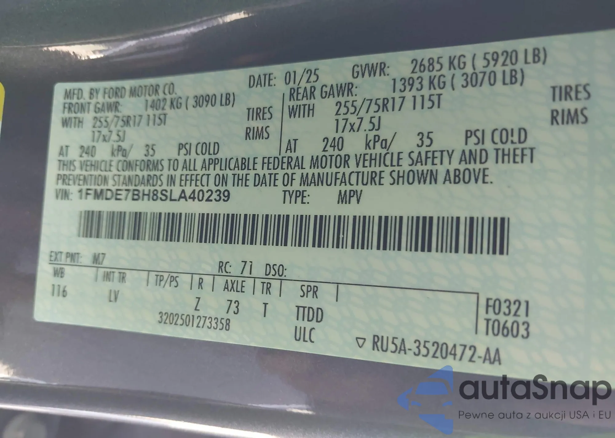 LOT: 43502172 VIN: 1FMDE7BH8SLA40239
