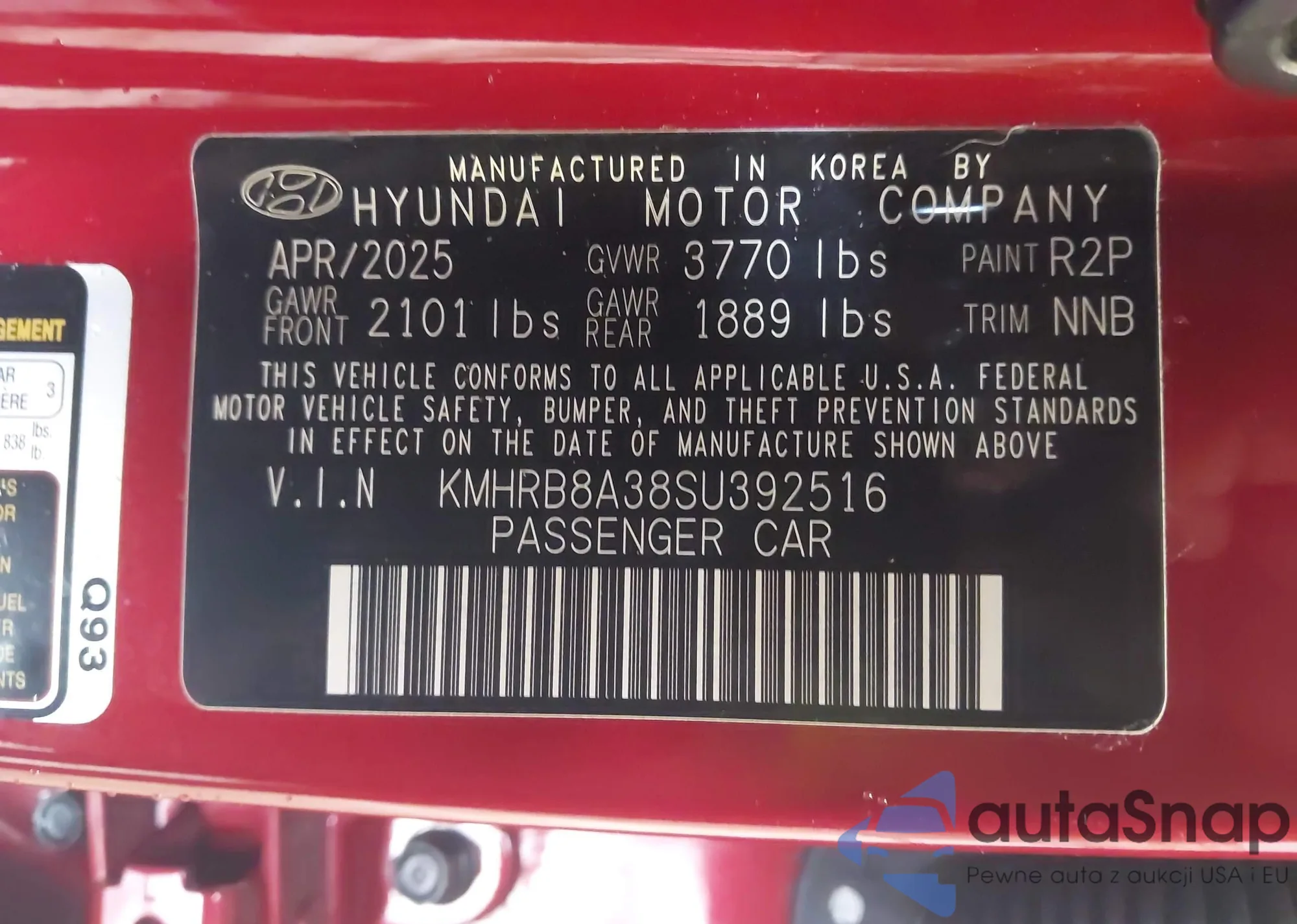 LOT: 43445498 VIN: KMHRB8A38SU392516