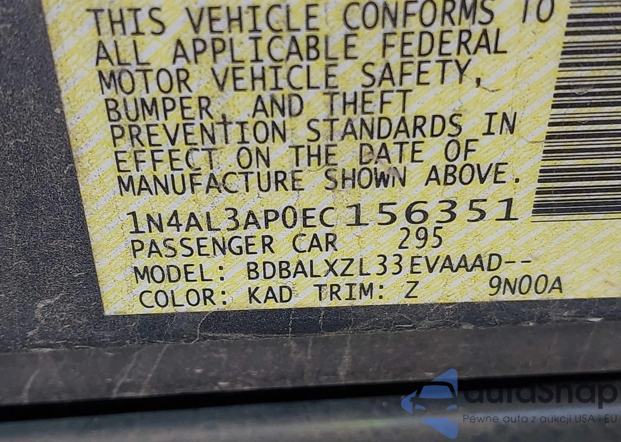 • VIN 1N4AL3AP0EC156351