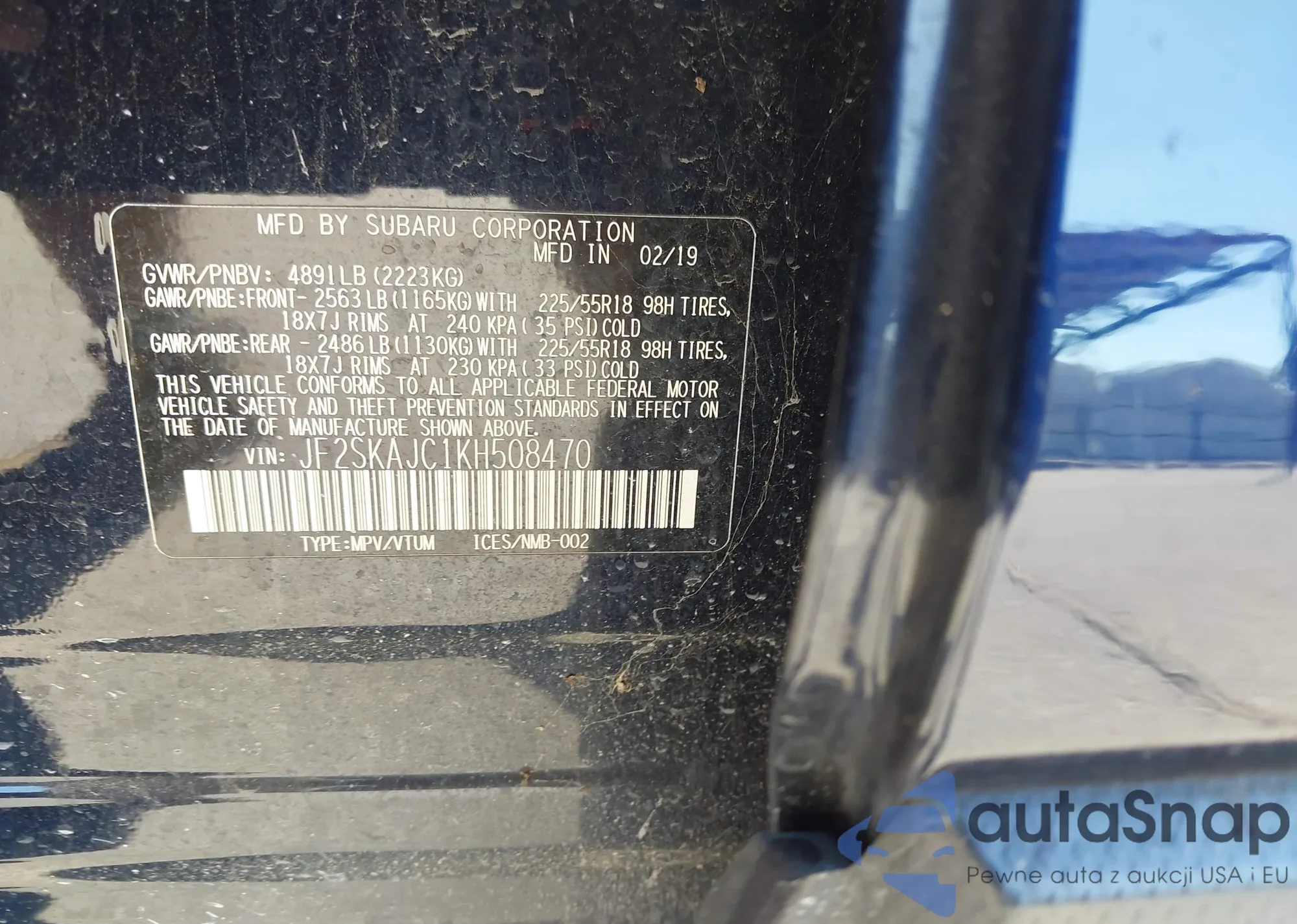 • VIN JF2SKAJC1KH508470
