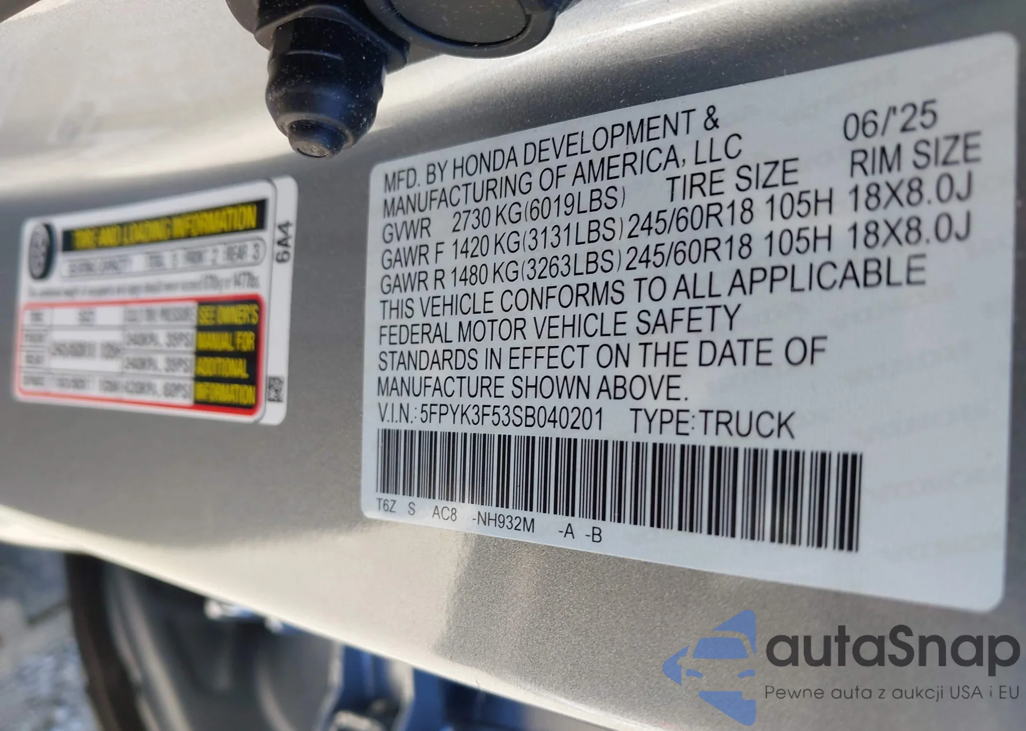 • VIN 5FPYK3F53SB040201