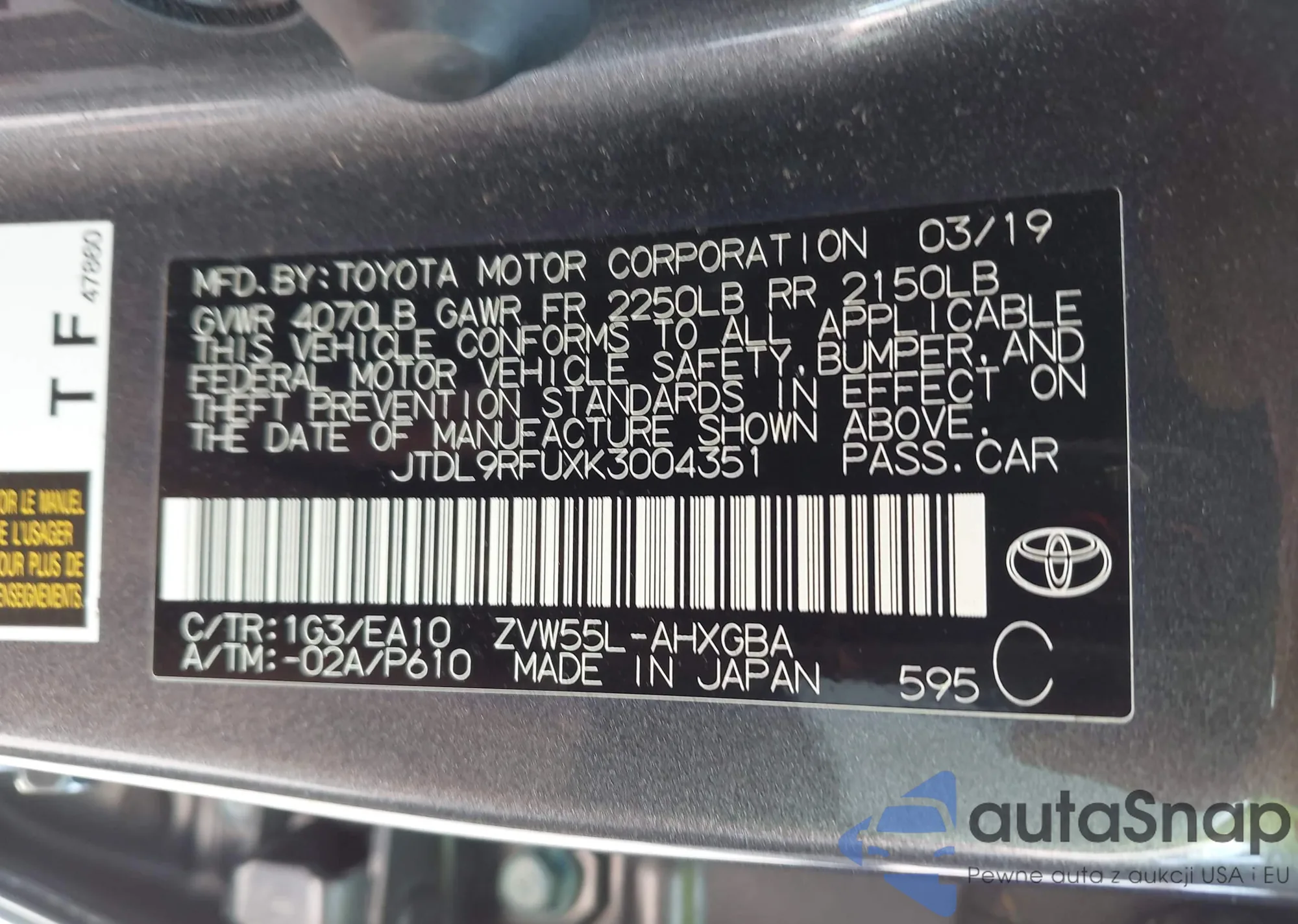 LOT: 43133064 VIN: JTDL9RFUXK3004351