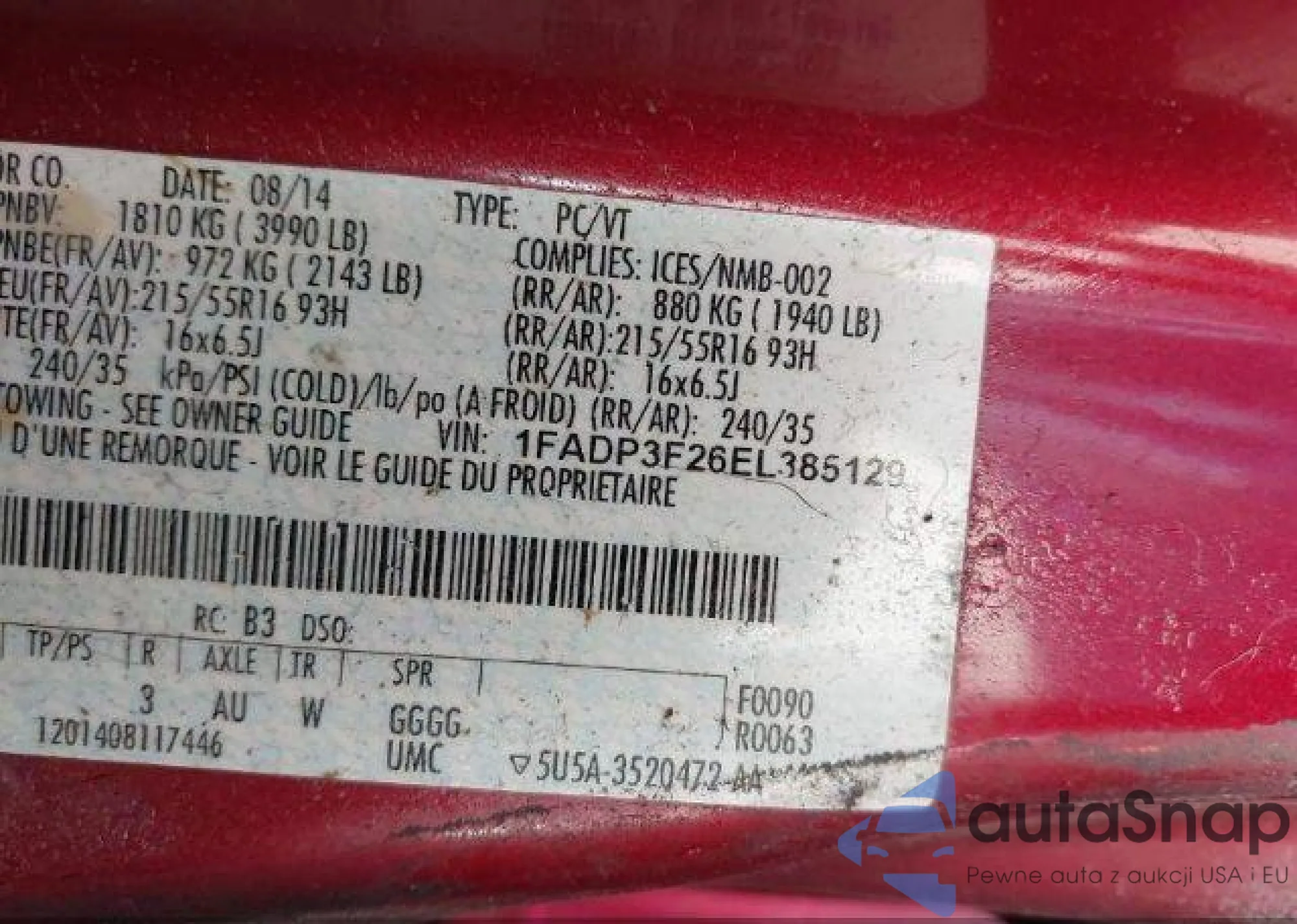 LOT: 43381097 VIN: 1FADP3F26EL385129