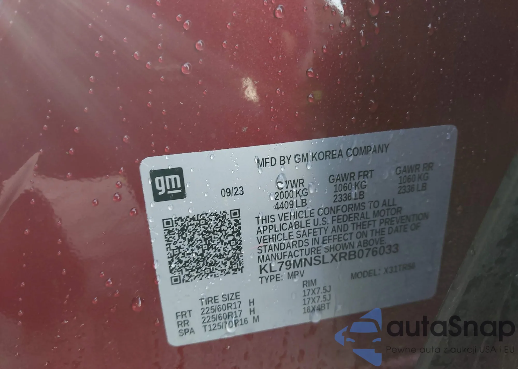 • VIN KL79MNSLXRB076033