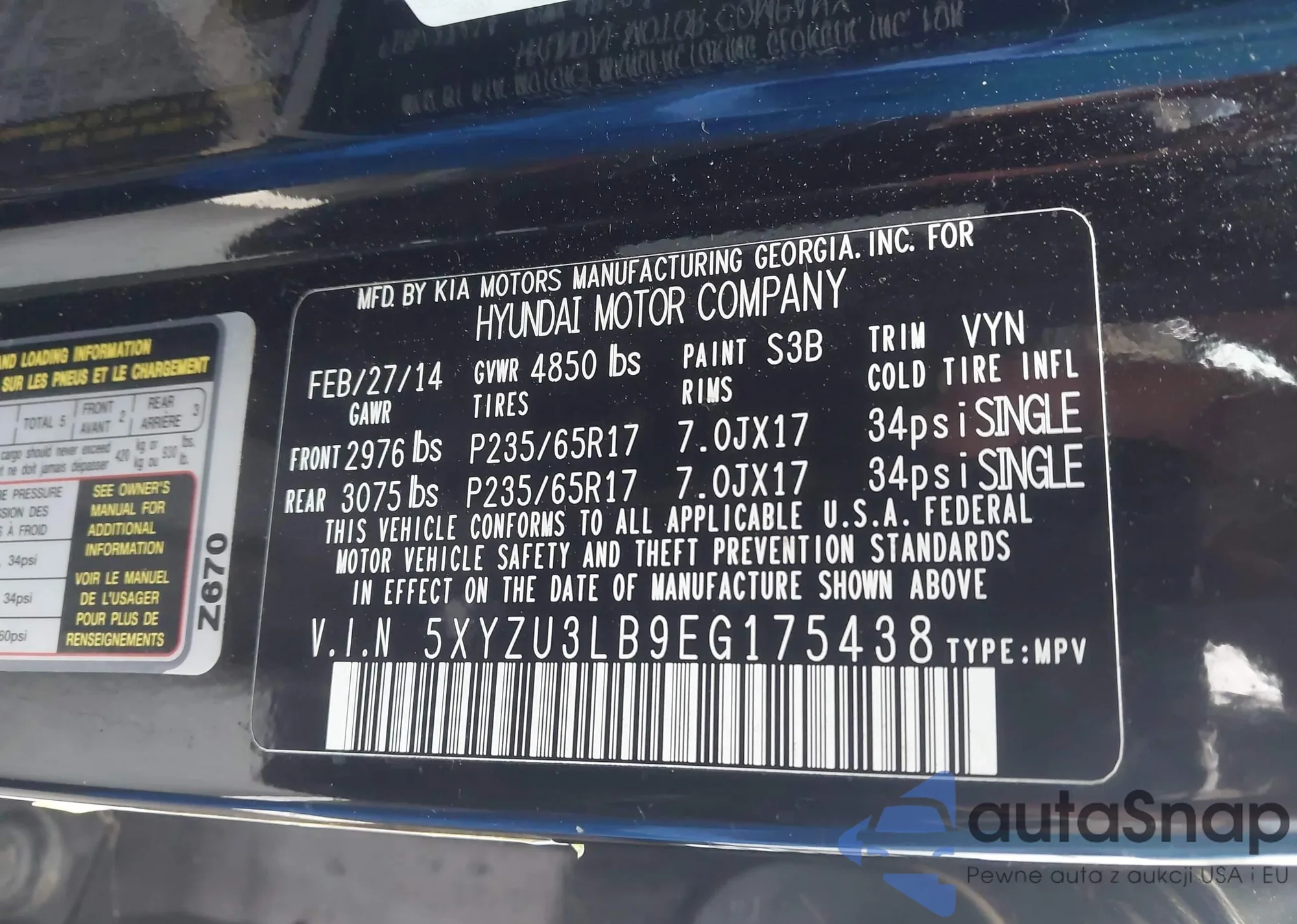 • VIN 5XYZU3LB9EG175438