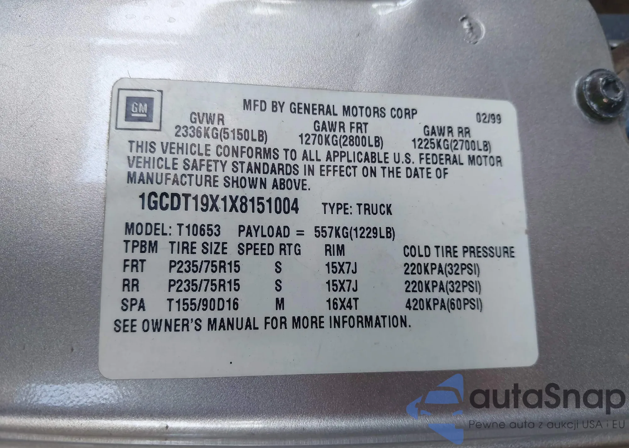 • VIN 1GTG5CEN8L1210558